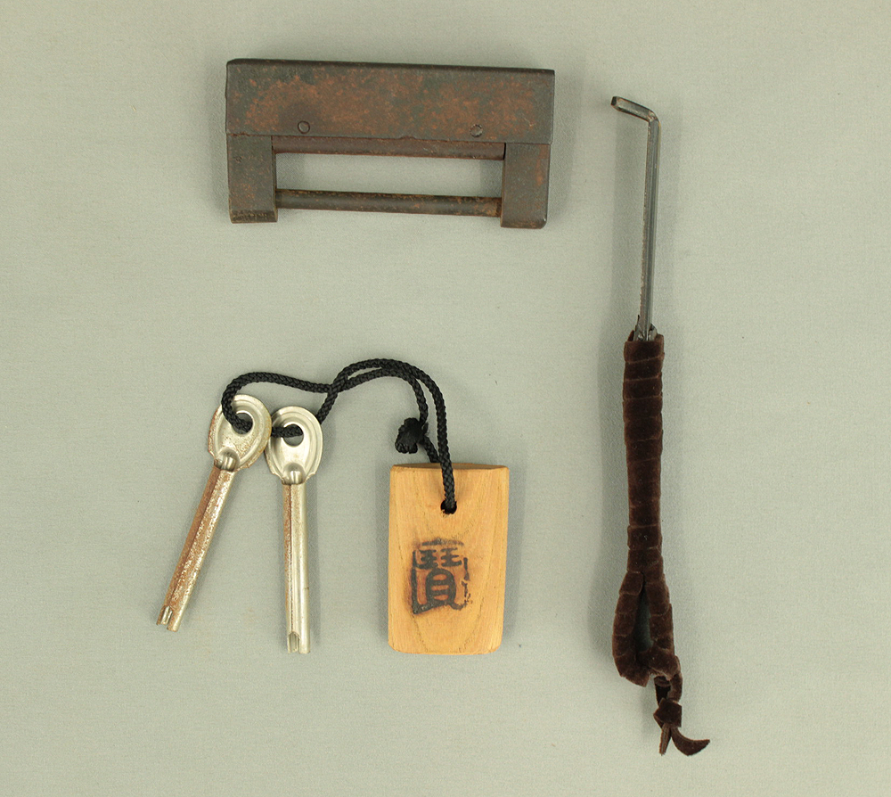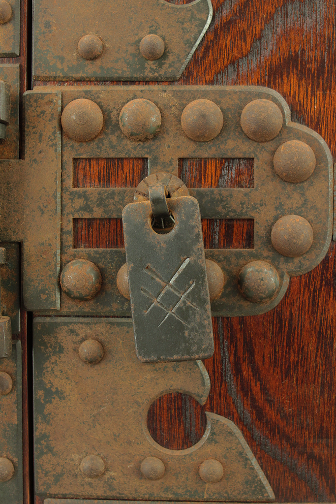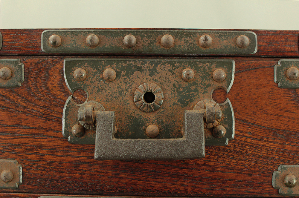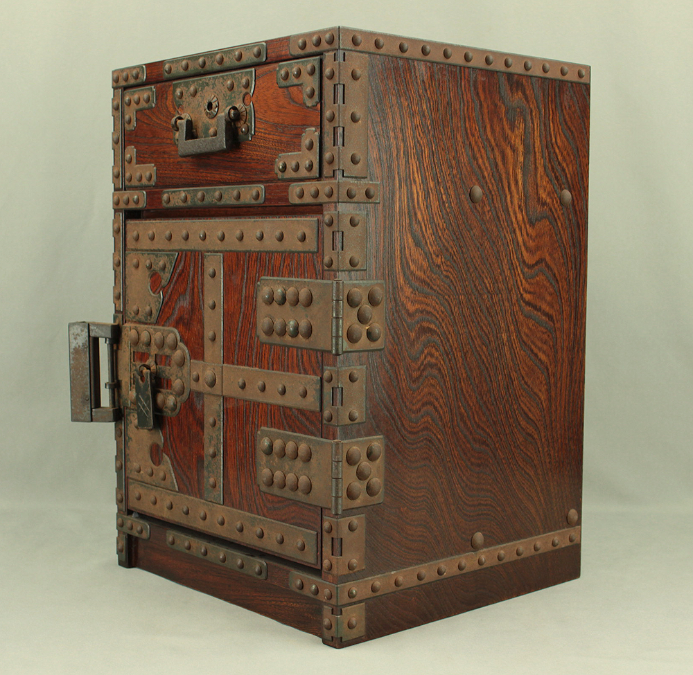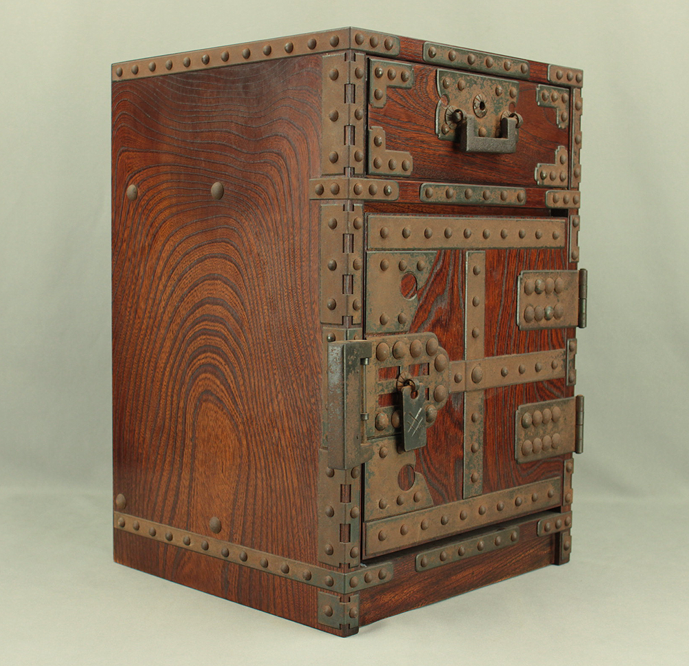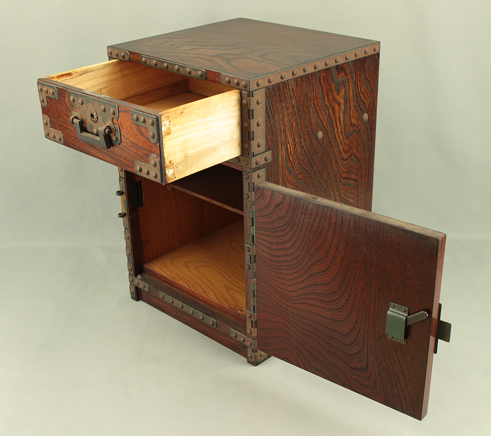 Funadansu Tansu Wooden Accessory Box reinforced with iron fittings, Drawers Lock and Key VA815