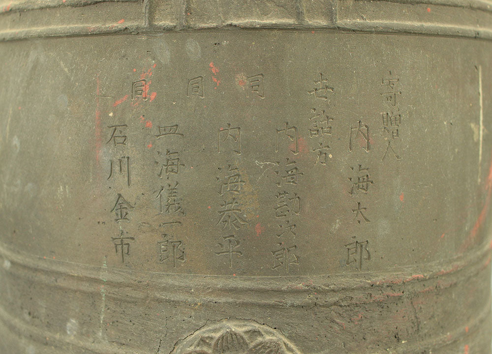 Engraved on the surface of the bell is the inscription: “Donated by Utsumi Tarō.”