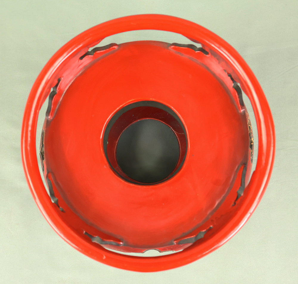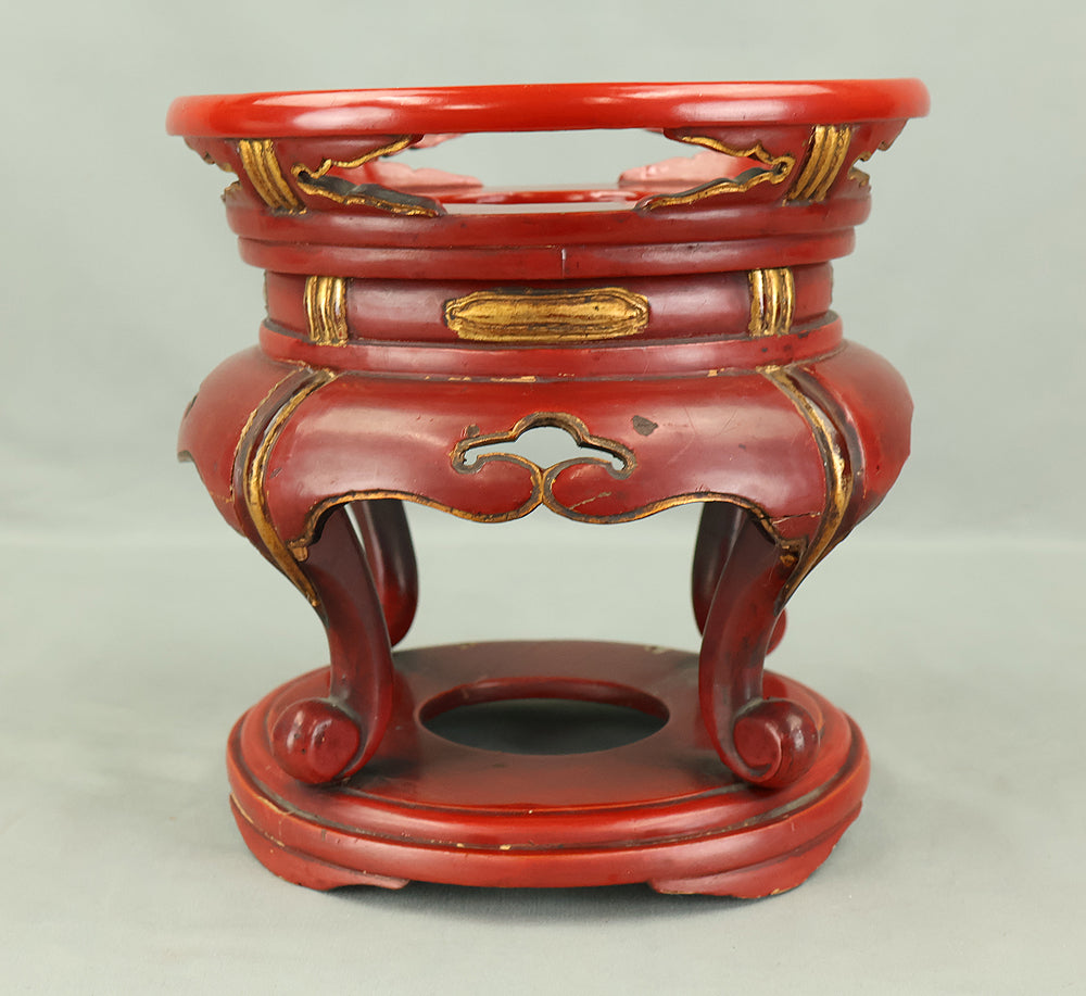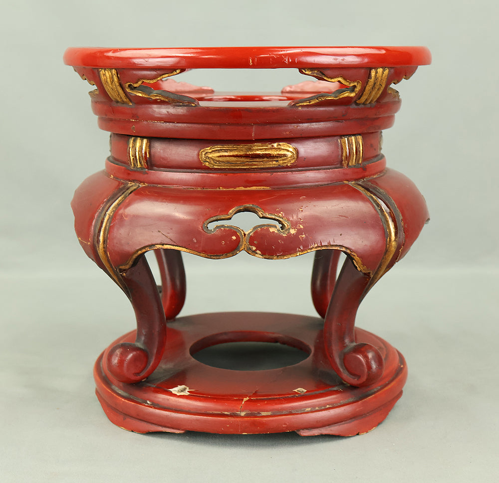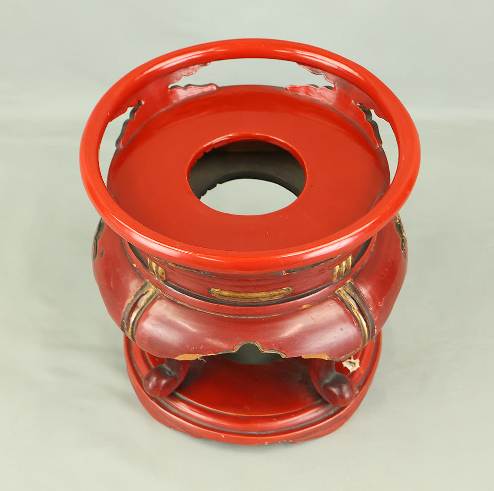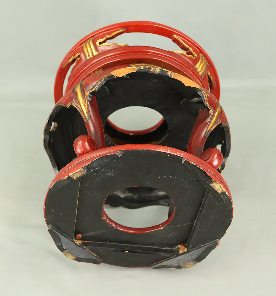 This traditional mokugyō (wooden fish) is carved with a rounded, resonant form and comes complete with its matching stand, embroidered cushion, and wooden striker, creating a fully assembled temple set ready for ceremonial use. The mokugyō is a percussion instrument used by monks and lay practitioners during Buddhist rituals, especially in the recitation of sutras and mantras, its steady rhythm supporting concentration and maintaining the cadence of chanting. Resting on a padded cushion to protect the wood and soften the impact, the drum produces a clear, warm tone that reflects the craftsmanship of its carving. As an object of both function and presence, the set brings a quiet sense of devotion and traditional atmosphere to any space, embodying the calm discipline of Buddhist practice.