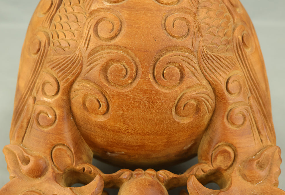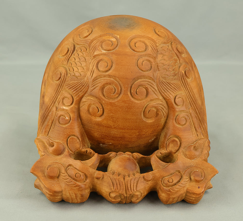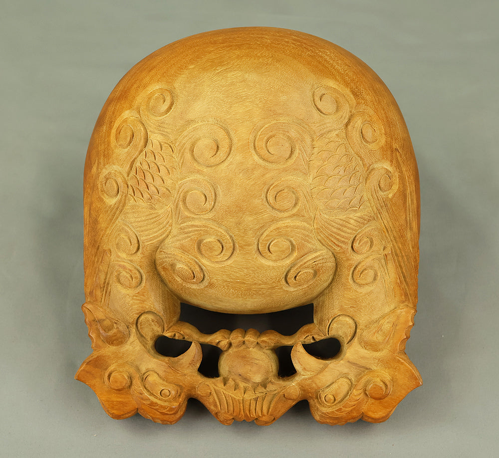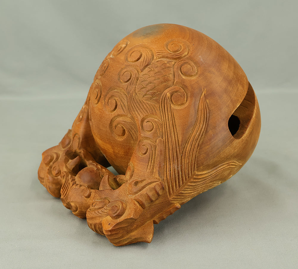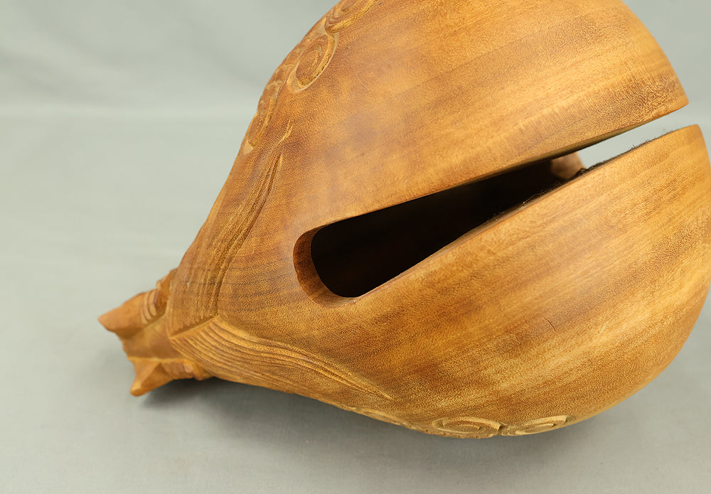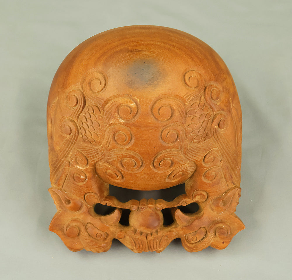 A wooden fish, also known as a wooden bell is used by monks and laypeople in the tradition of Buddhism. They are used in Buddhist ceremonies. Wooden fish is often used in rituals usually involving the recitation of sutras, mantras, or other Buddhist texts. Wooden fish often rest on a small embroidered cushion to prevent damage and unpleasant knocking sounds.