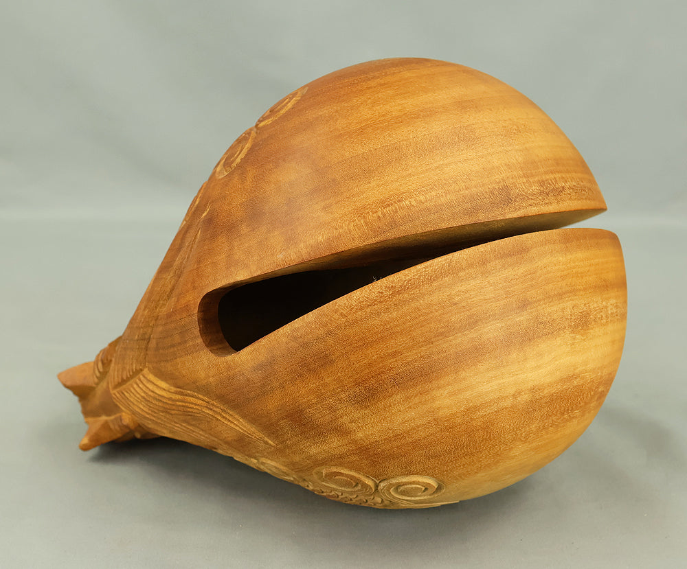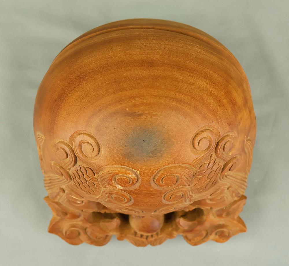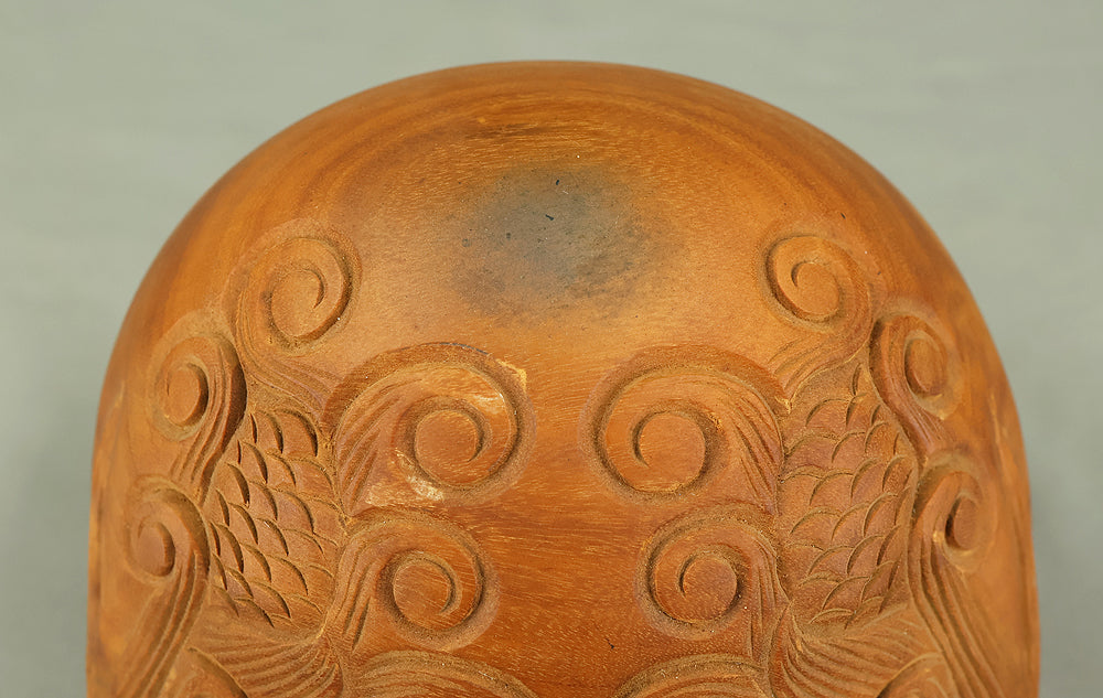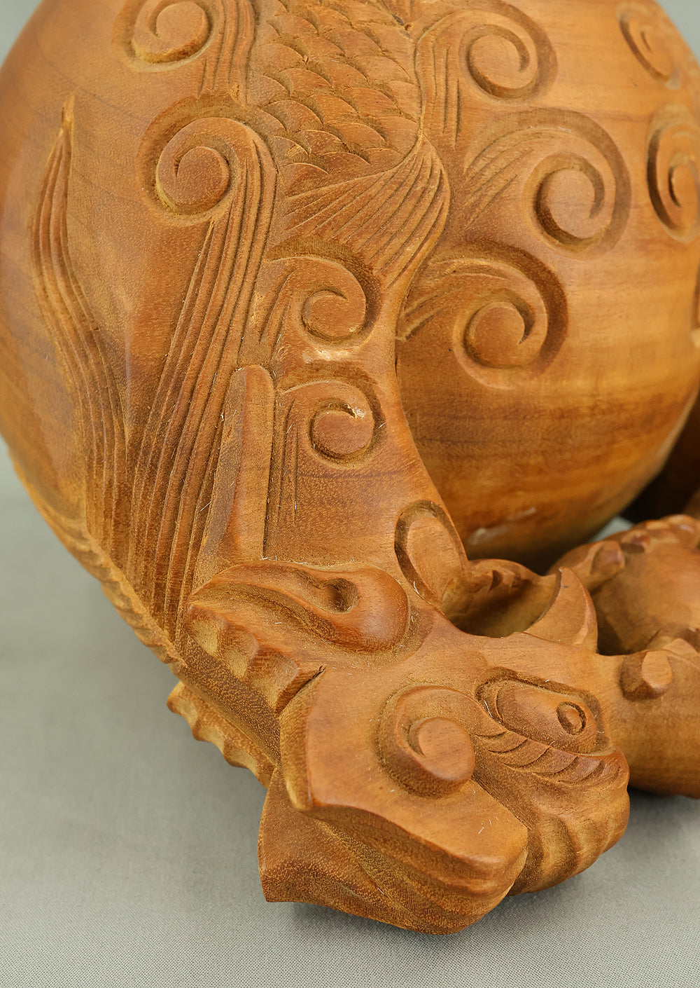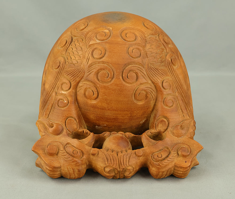 A wooden fish, also known as a wooden bell is used by monks and laypeople in the tradition of Buddhism. They are used in Buddhist ceremonies. Wooden fish is often used in rituals usually involving the recitation of sutras, mantras, or other Buddhist texts. Wooden fish often rest on a small embroidered cushion to prevent damage and unpleasant knocking sounds.