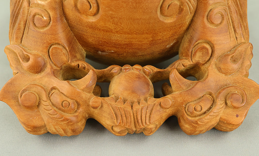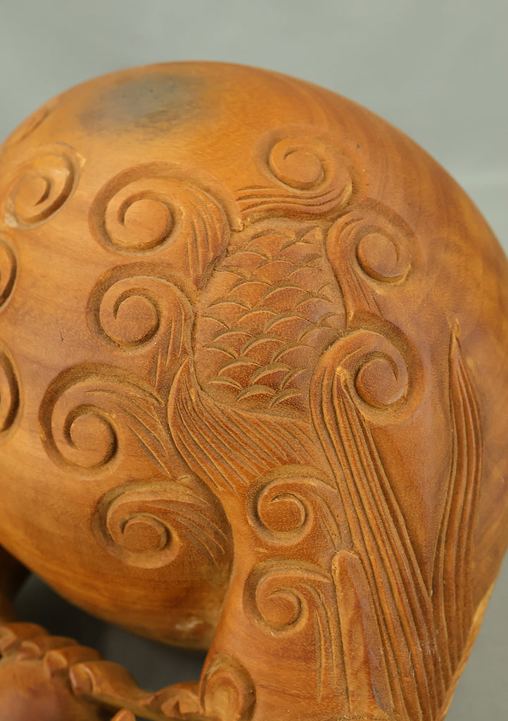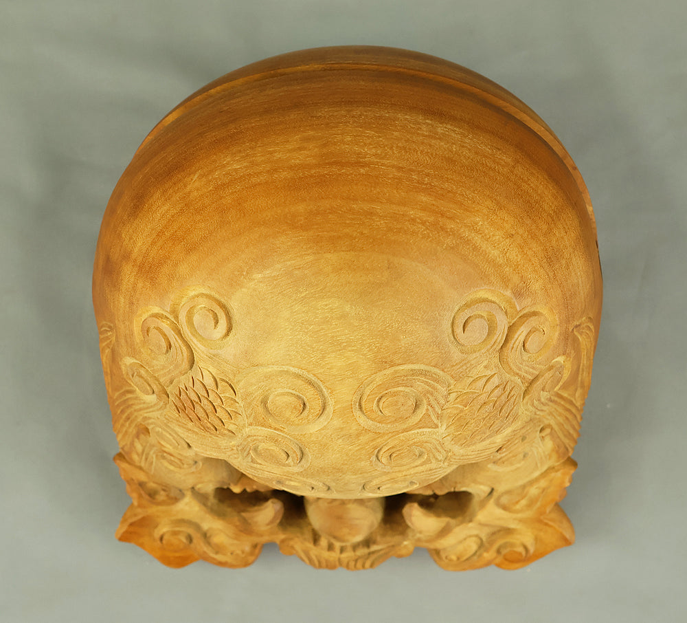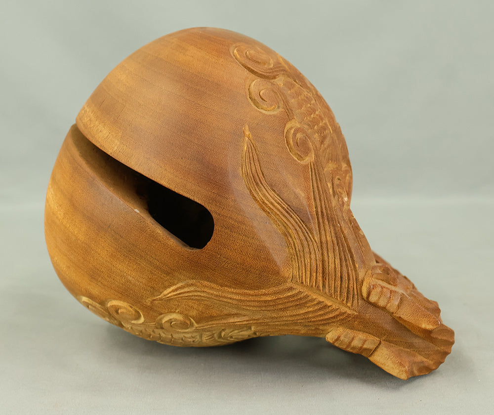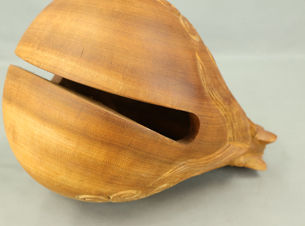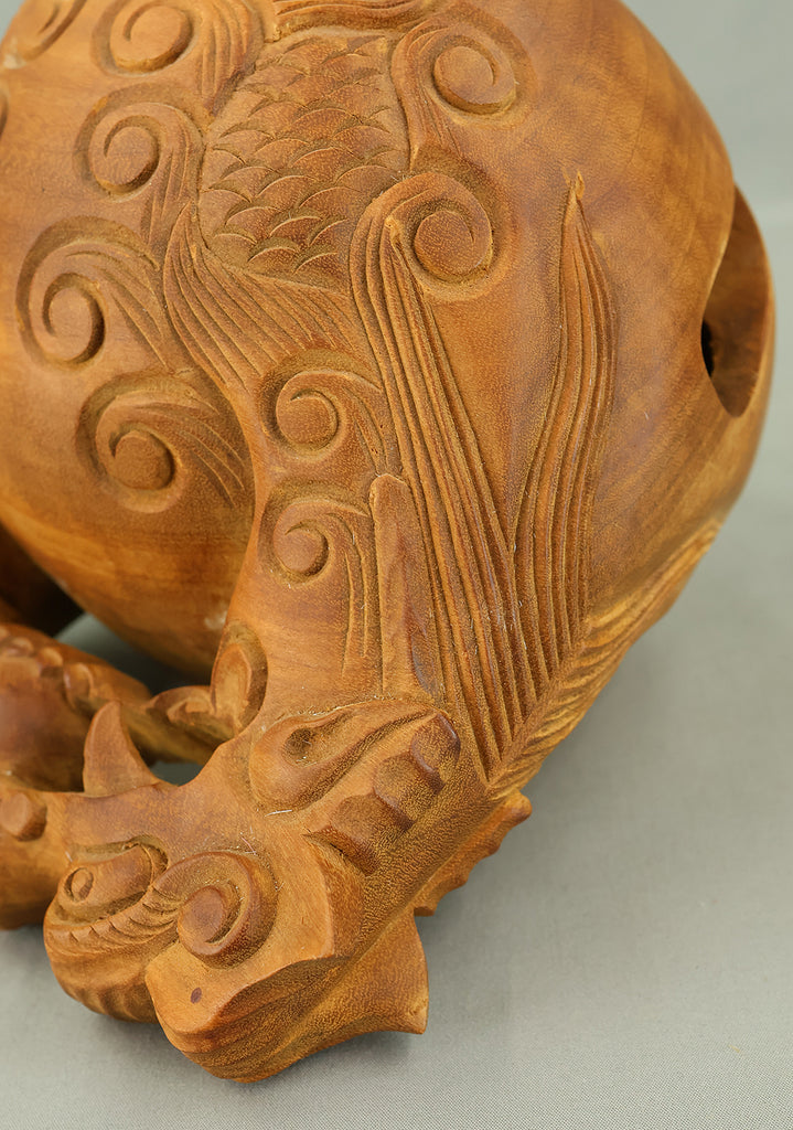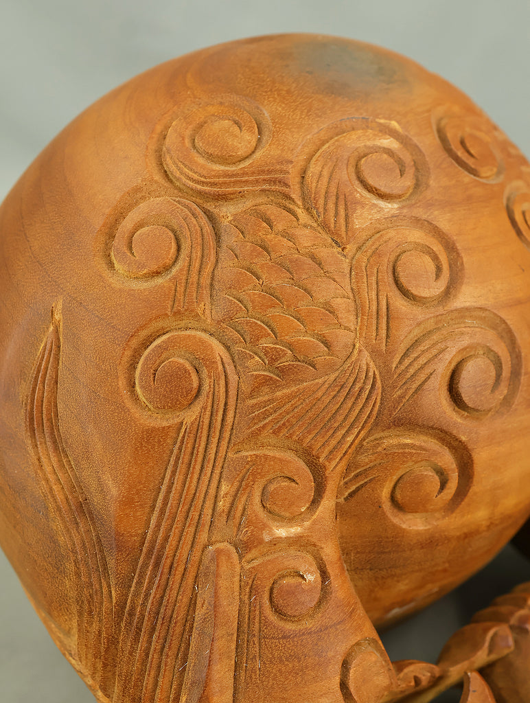 Mokugyo (Wooden Fish) Fish-shaped Wooden Temple Drum Gong with Stick, Cushion, and Stand VB142