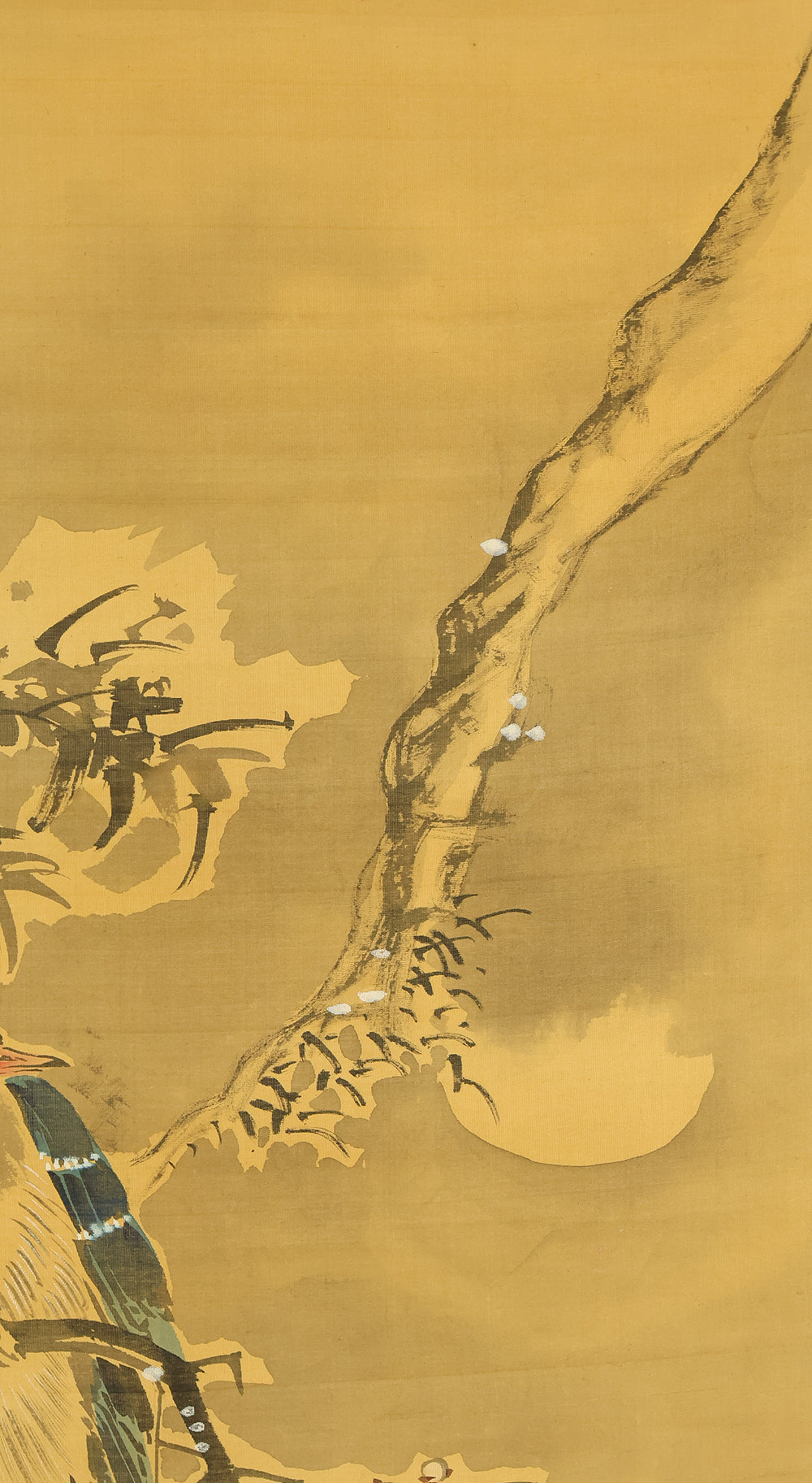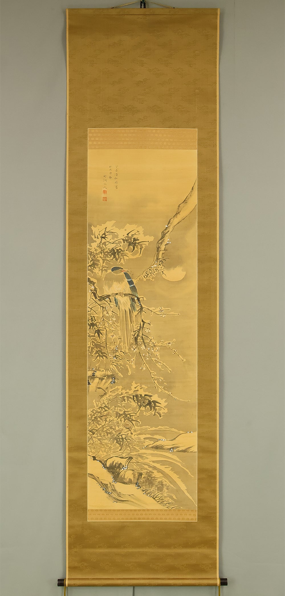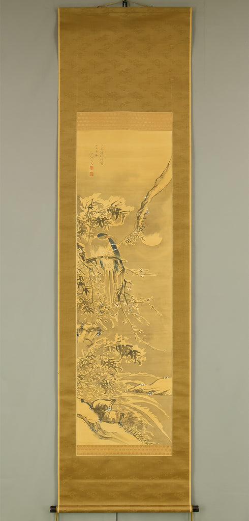 中林竹洞 Nakabayashi Chikuto (1776-1853) Japanese art kakejiku kakemono wall hanging scroll / Long Tailed Bird in Moonlight with Appraised Box RE138