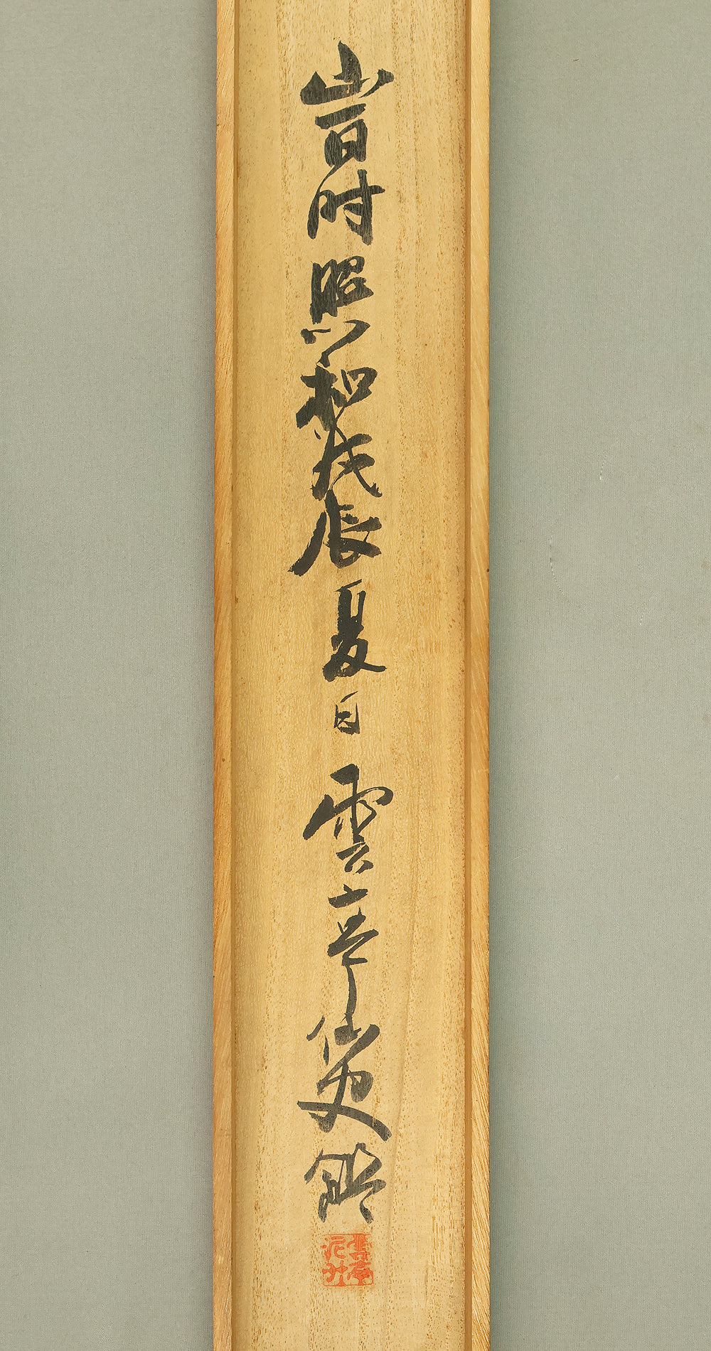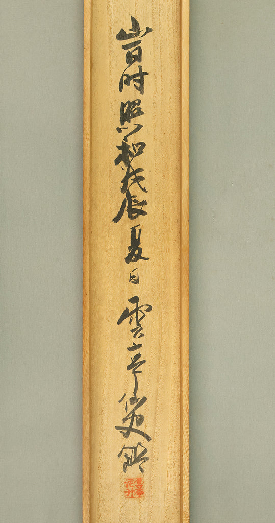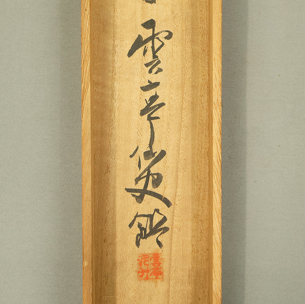 This scroll comes with an appraised box inscribed and signed by “雲亭仙史 Untei Senshi,”