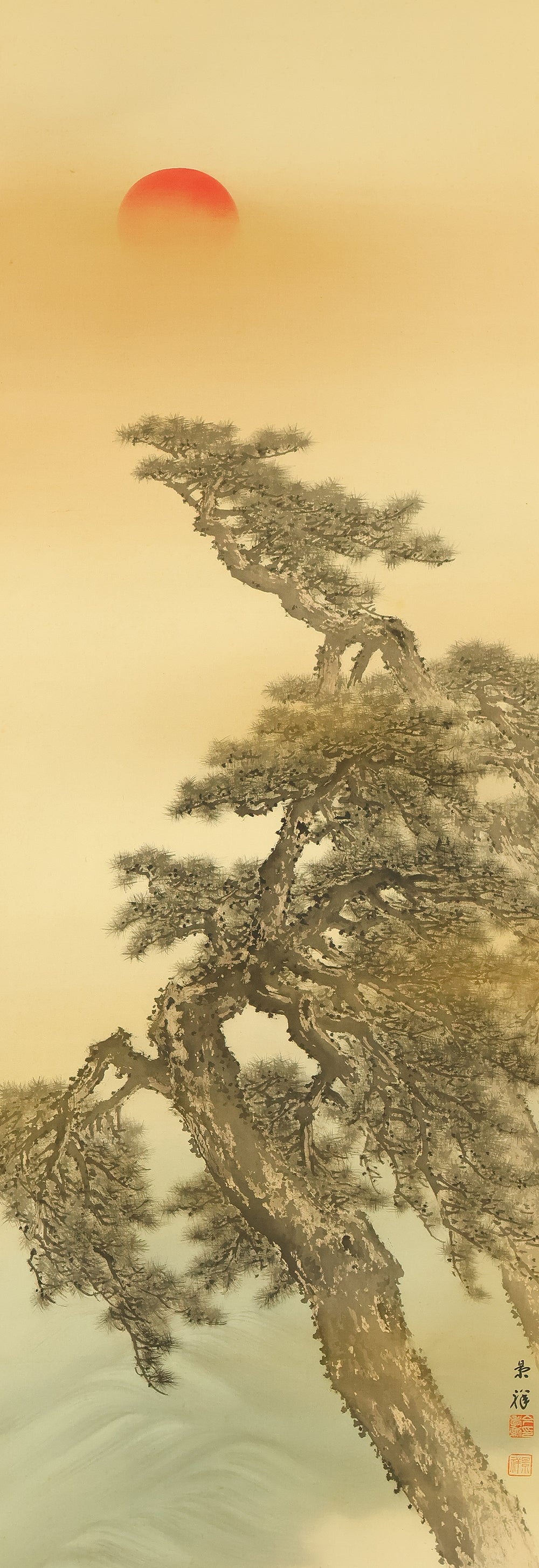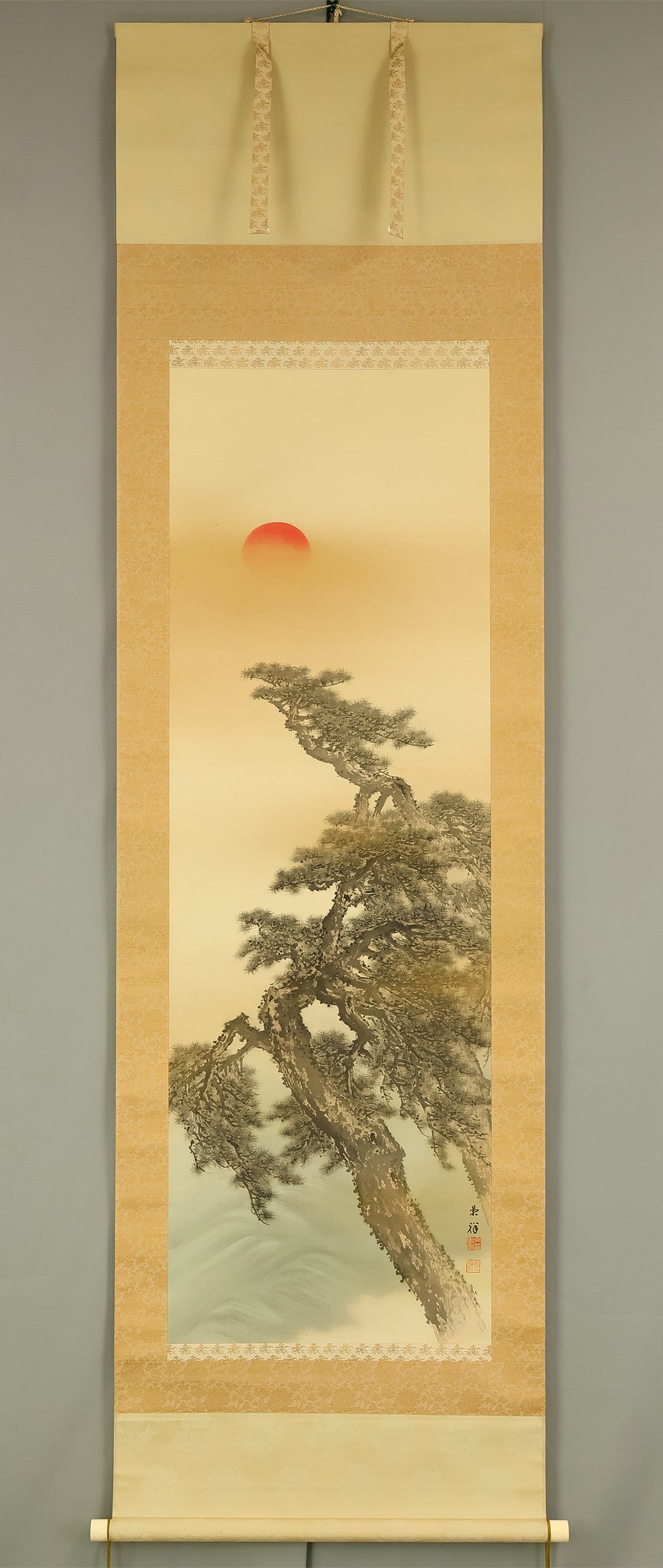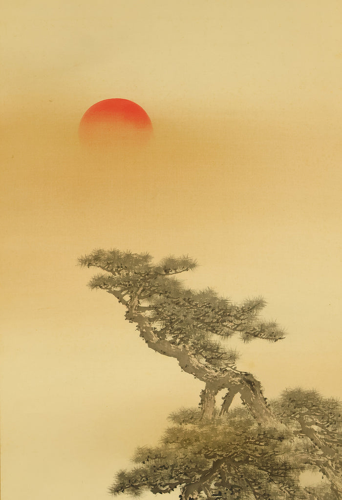 今尾景祥 Imao Keisho (1902-1993) Japanese art kakejiku kakemono wall hanging scroll / Rising Sun and Pine Tree with Original Double Box (Tomobako) RE133