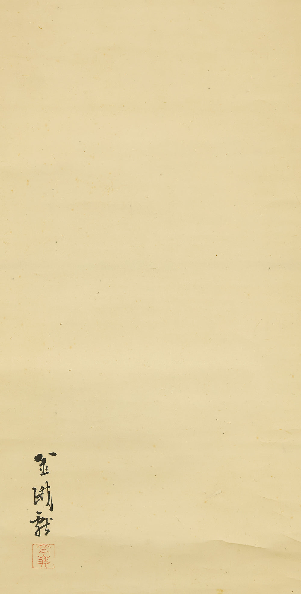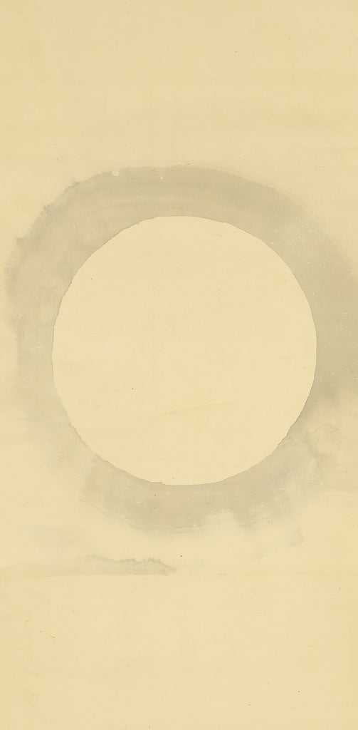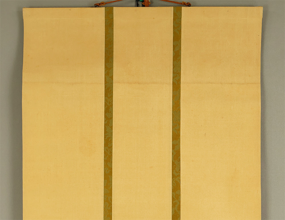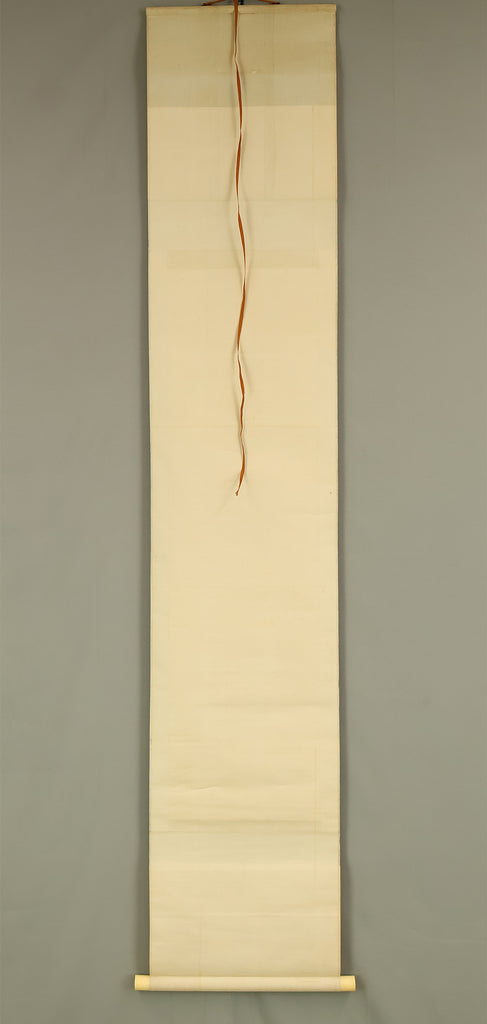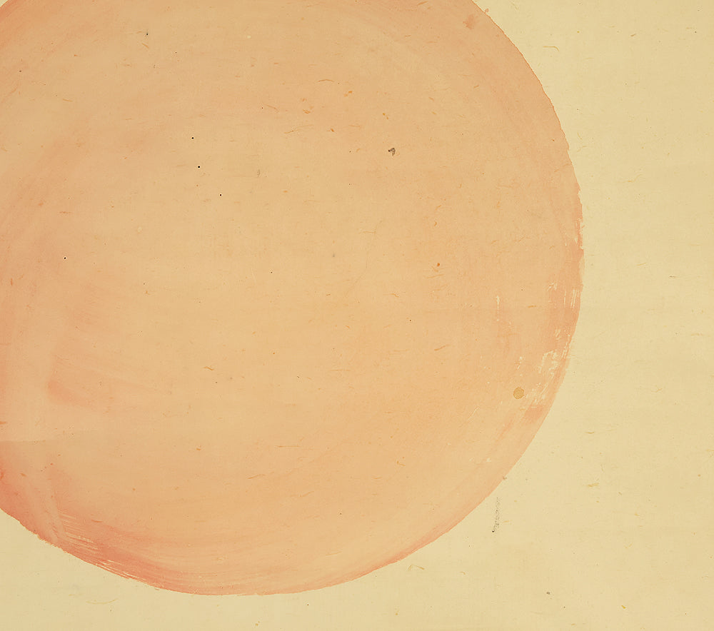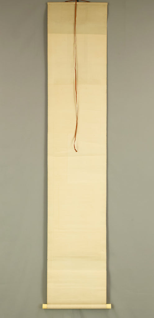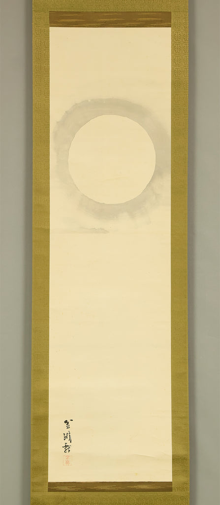 This elegant pair of hanging scrolls presents a refined dialogue between the rising sun and the moon, rendered with remarkable restraint and sensitivity by Furuichi Kinga, whose mature style favors atmosphere and balance over overt narrative. Each scroll is devoted to a single celestial presence, suspended in a vast, softly toned expanse that emphasizes stillness and temporal rhythm rather than physical landscape, allowing the viewer to experience dawn and night as complementary states rather than opposites. The subtle gradations of pigment and the generous use of empty space reflect Kinga’s absorption of both Shijō naturalism and later Nanga sensibilities, where suggestion carries more weight than description. When displayed together, the pair creates a quiet cyclical movement—day yielding to night, night returning to day—embodying harmony, continuity, and contemplative calm. The work is accompanied by a fitted storage box, ensuring proper preservation, while the restrained composition and measured brushwork reveal an artist deeply attuned to poetic abstraction and the passage of time.