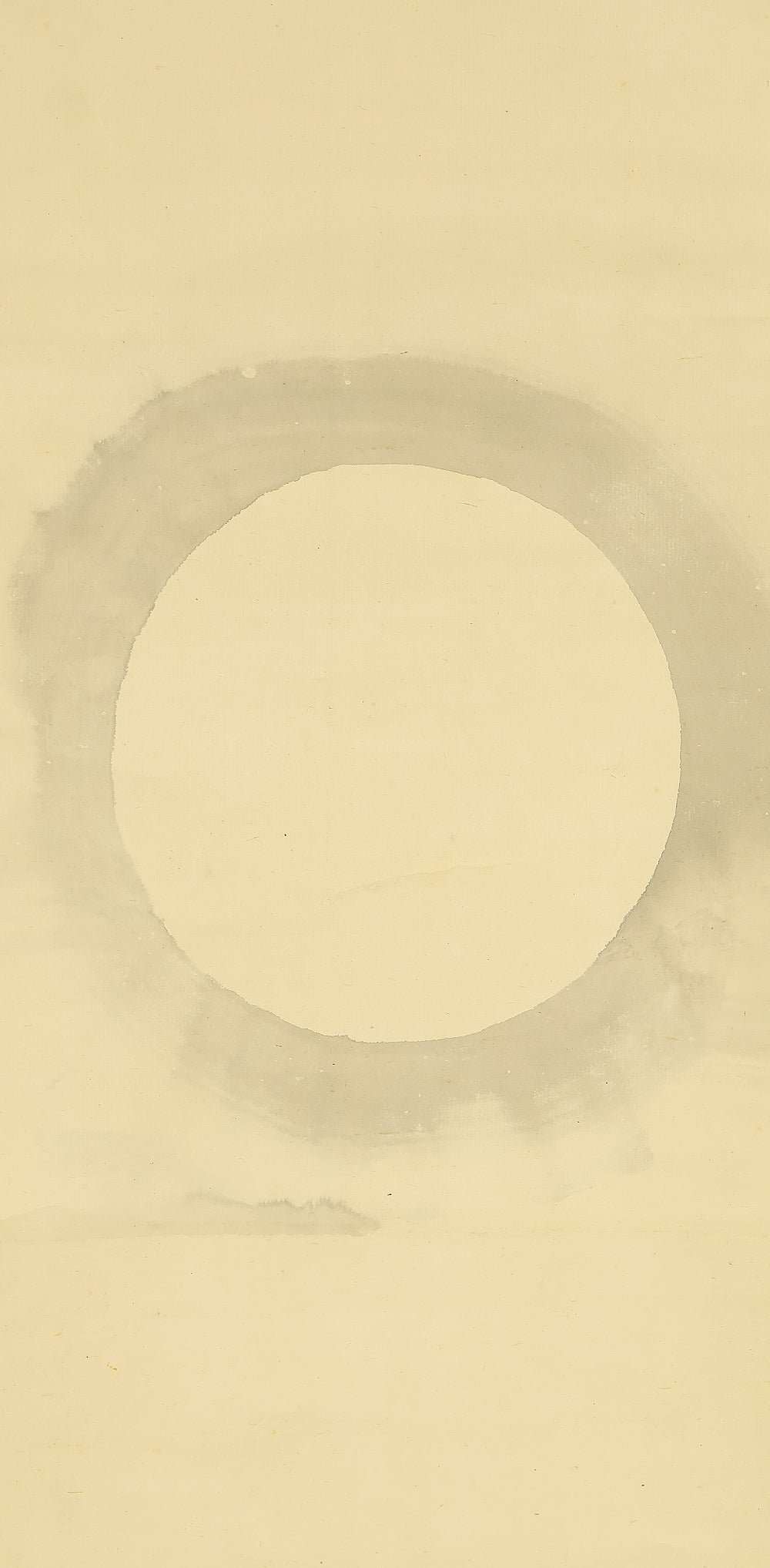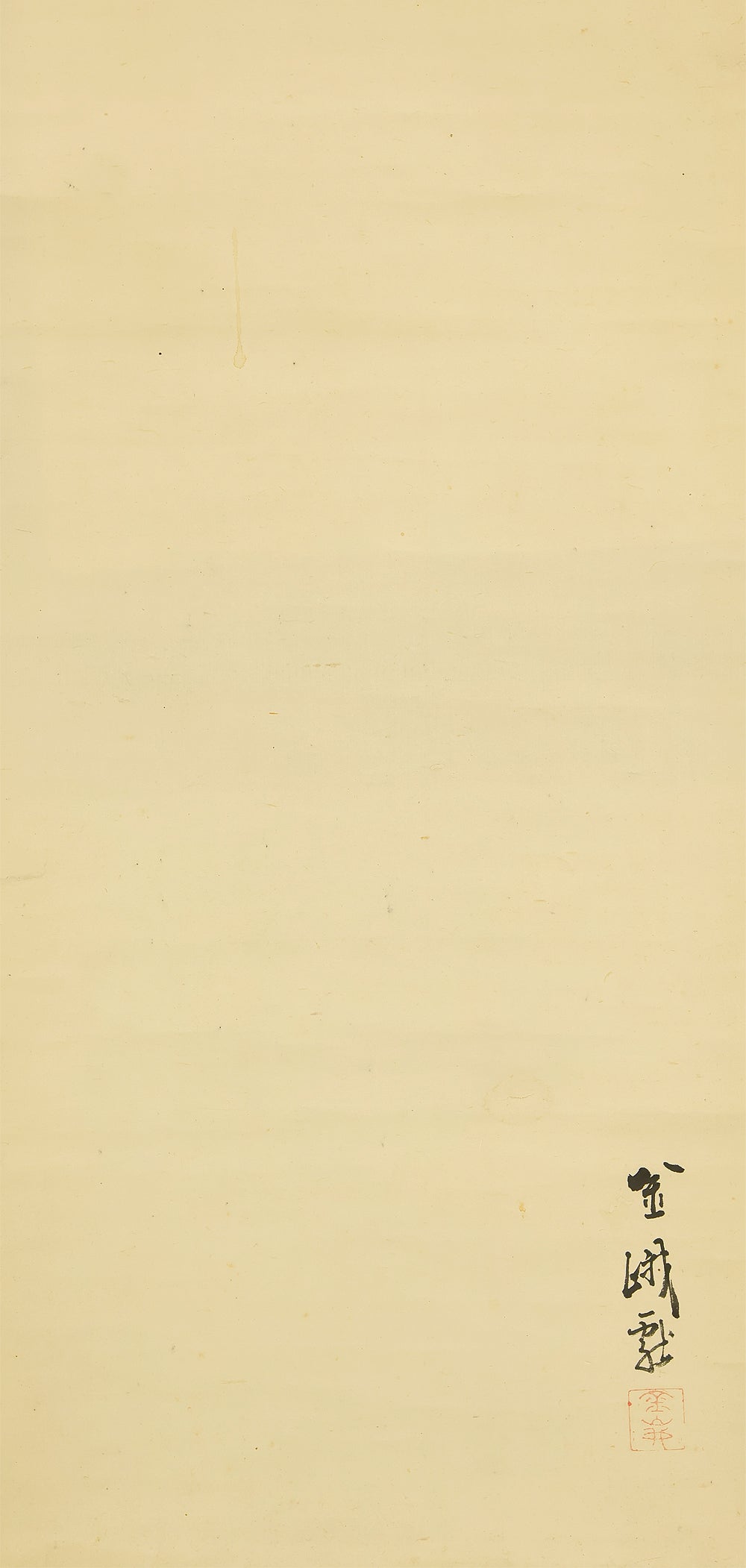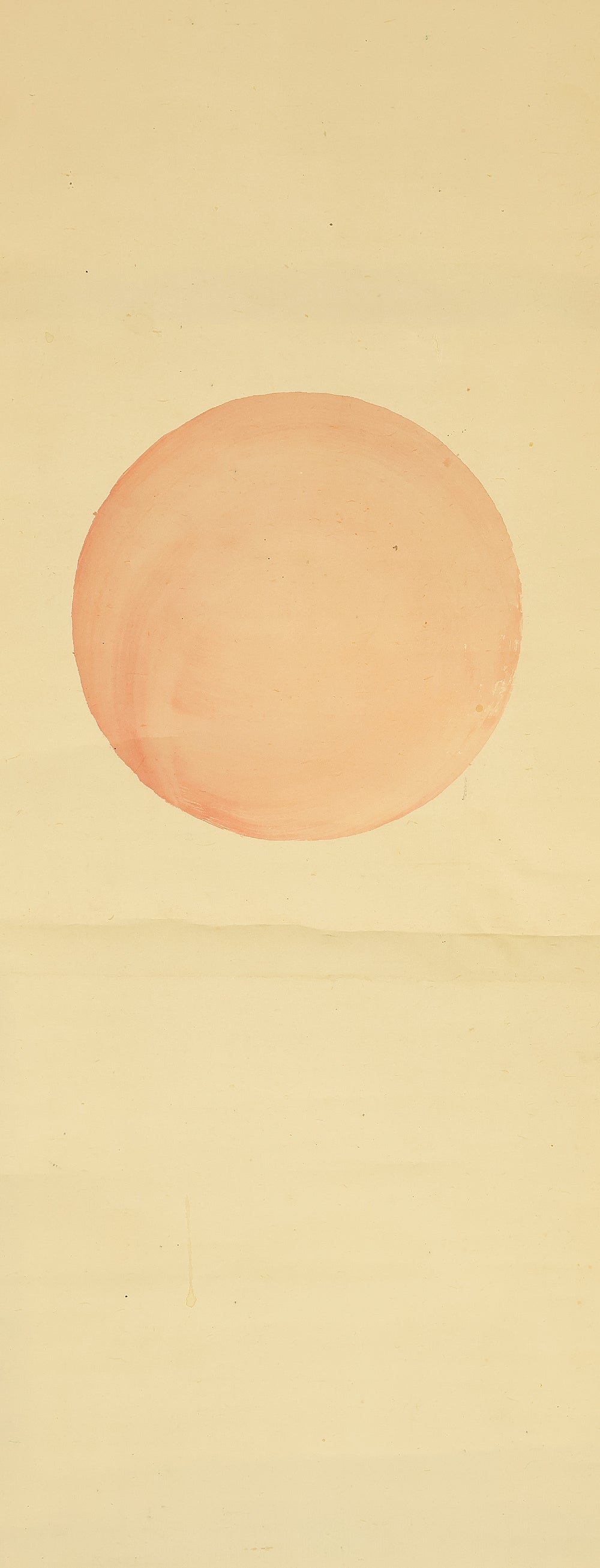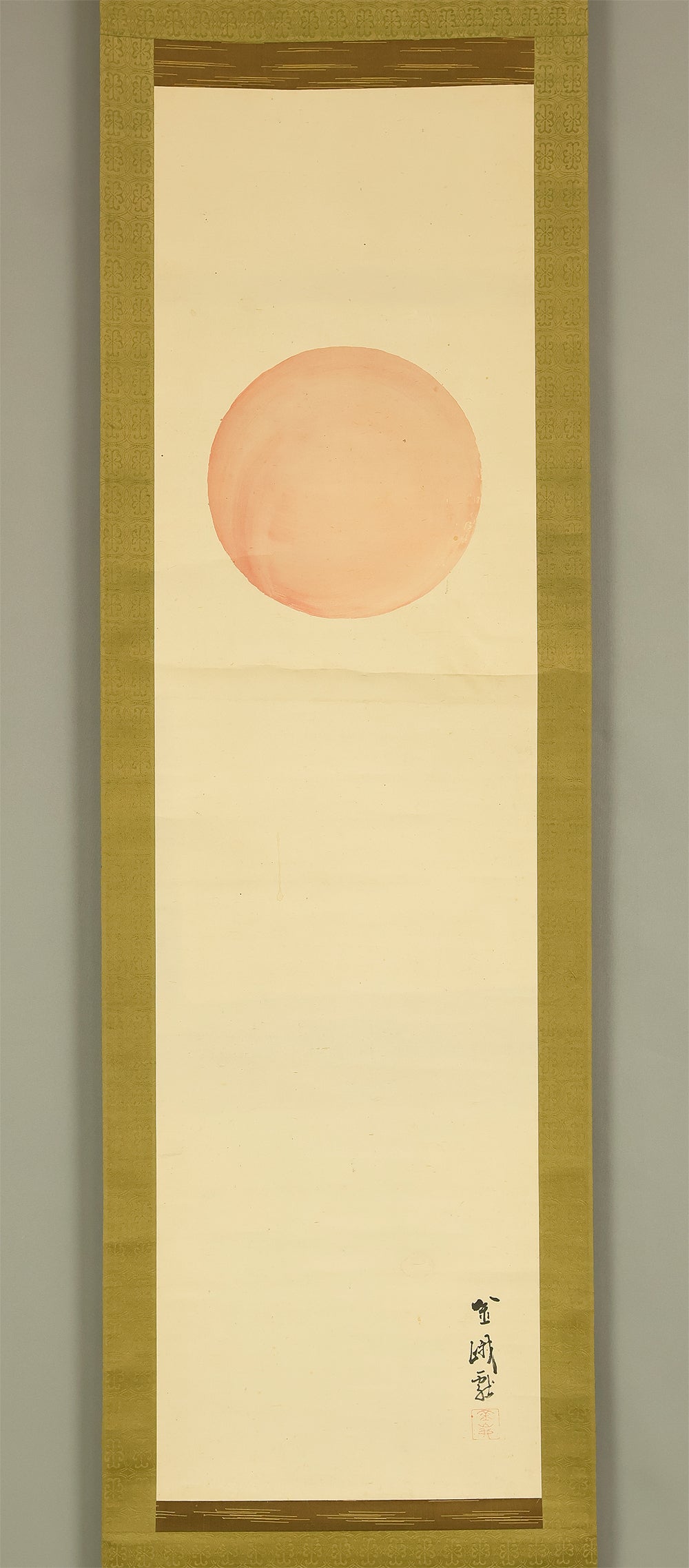 This elegant pair of hanging scrolls presents a refined dialogue between the rising sun and the moon, rendered with remarkable restraint and sensitivity by Furuichi Kinga, whose mature style favors atmosphere and balance over overt narrative. Each scroll is devoted to a single celestial presence, suspended in a vast, softly toned expanse that emphasizes stillness and temporal rhythm rather than physical landscape, allowing the viewer to experience dawn and night as complementary states rather than opposites. The subtle gradations of pigment and the generous use of empty space reflect Kinga’s absorption of both Shijō naturalism and later Nanga sensibilities, where suggestion carries more weight than description. When displayed together, the pair creates a quiet cyclical movement—day yielding to night, night returning to day—embodying harmony, continuity, and contemplative calm. The work is accompanied by a fitted storage box, ensuring proper preservation, while the restrained composition and measured brushwork reveal an artist deeply attuned to poetic abstraction and the passage of time.