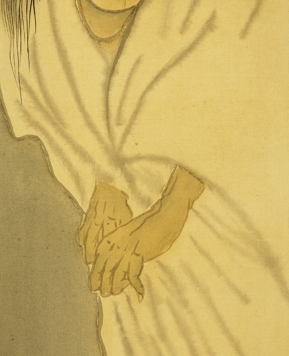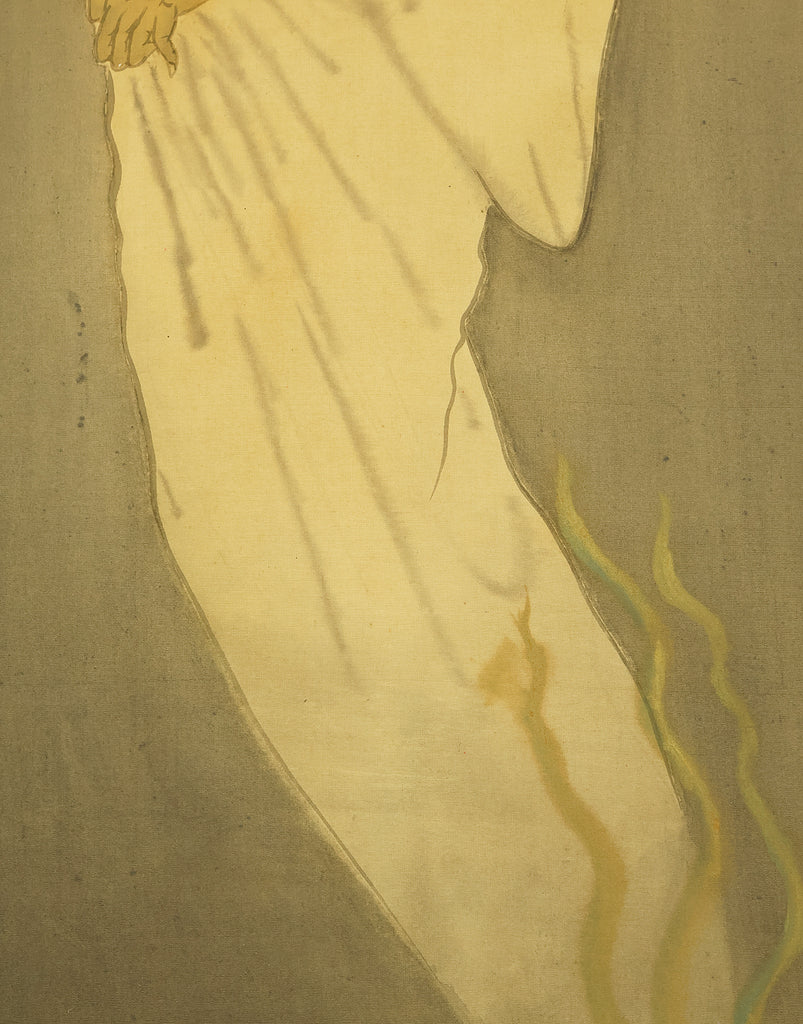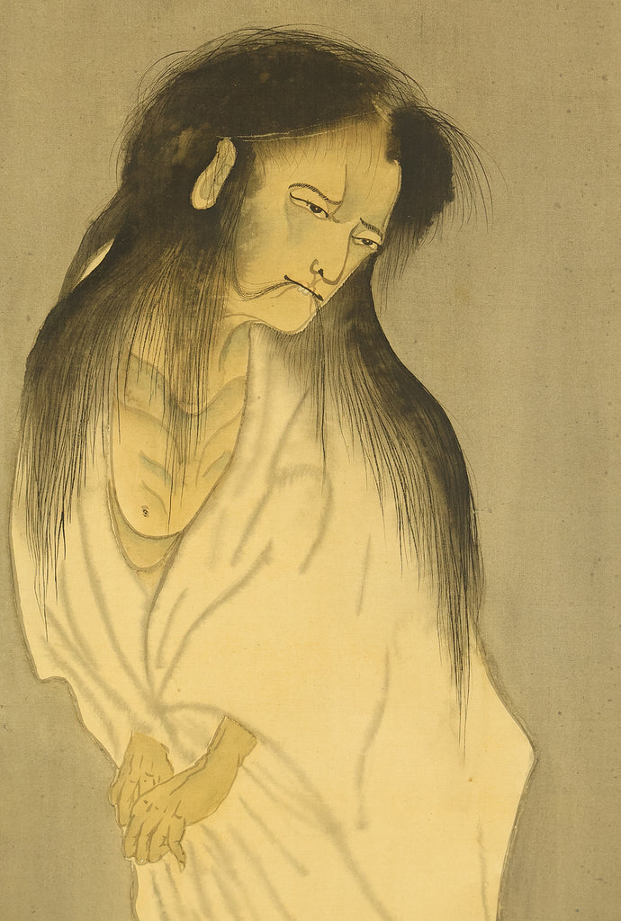 松峰 Shoho Japanese art kakejiku kakemono wall hanging scroll / Yurei-zu (Ghost painting) Woman Long Hair Dressed in White Robes with Box RD861