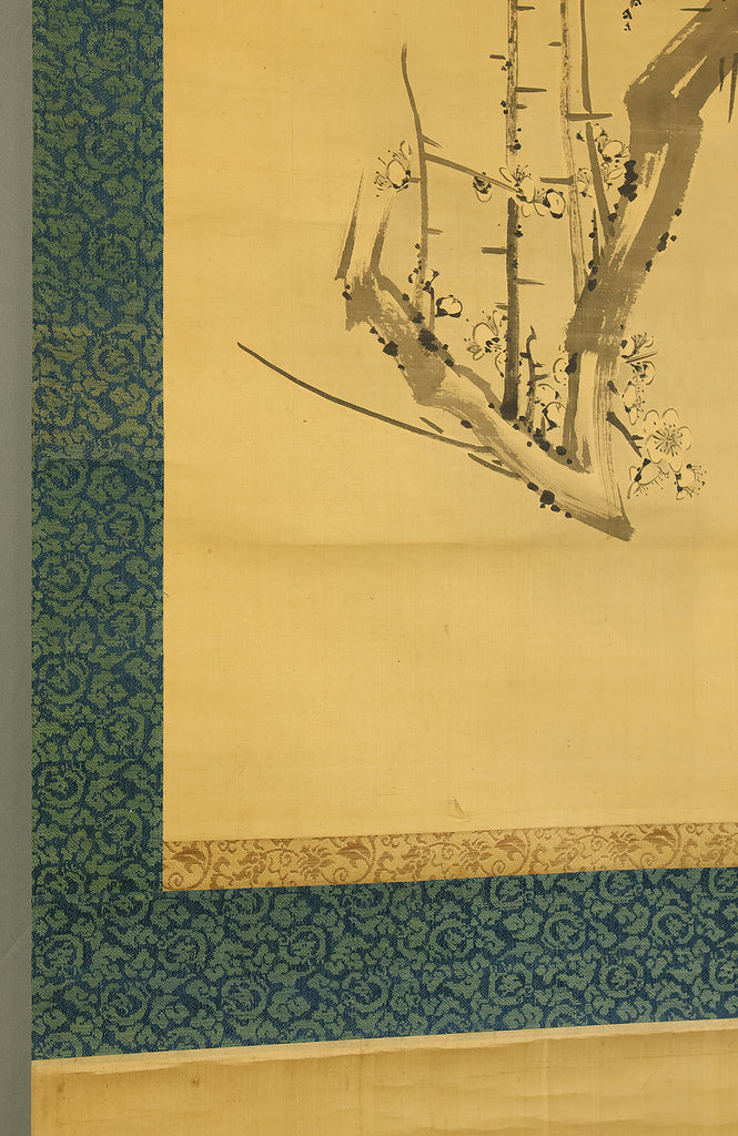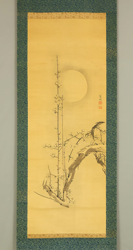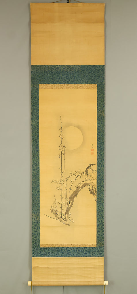 維明周奎 Imei Shukei (1731-1808) Japanese antique art kakejiku kakemono wall hanging scroll / Suiboku Ink Moon and Plum Blossoms with Box RE370