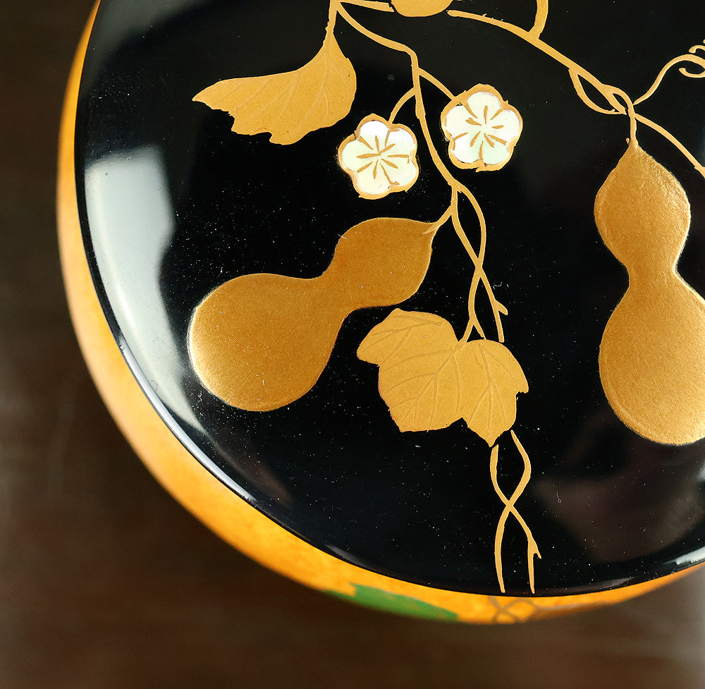 田中宗凌 Tanaka Soryo Japanese tea ceremony utensil 'Processed Gourds, Featuring Gourd Patterns' Makie Gold Lacquer Natsume Tea Caddy with Original Box (Tomobako) VA884