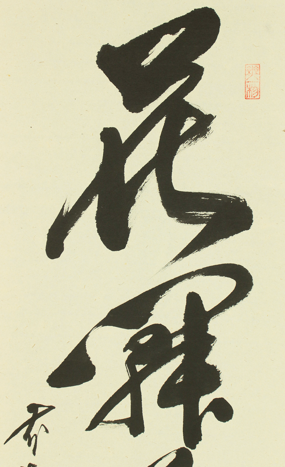 佐藤朴堂 Sato Bokudo (b1935) Daitoku-ji Japanese Zen art kakejiku kakemono wall hanging scroll Tea Ceremony / 花開万国春 Hanahiraite Bankoku Haru with Original Box (Tomobako) RD466
