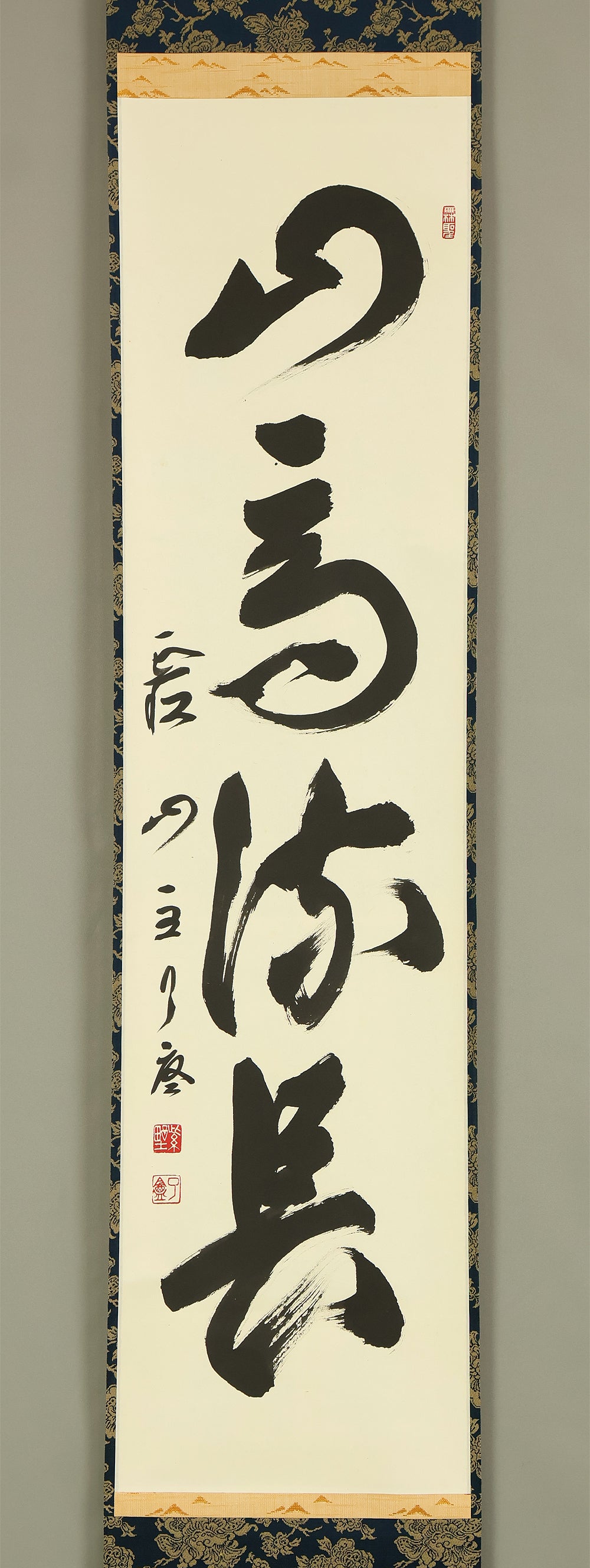 橘宗義 Tachibana Sogi (b1941) Daitoku-ji Japanese Zen kakejiku kakemono wall hanging scroll / 山高流長 Sanko Ryucho with Original Box (Tomobako) RE387