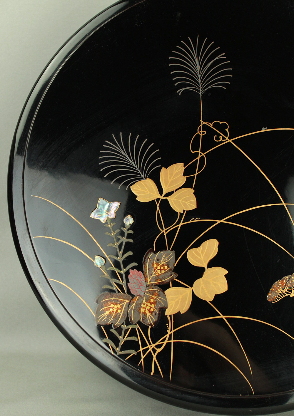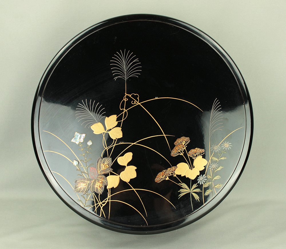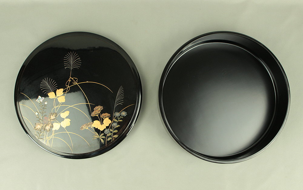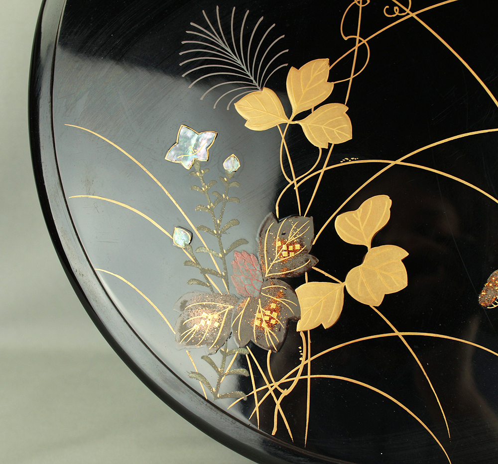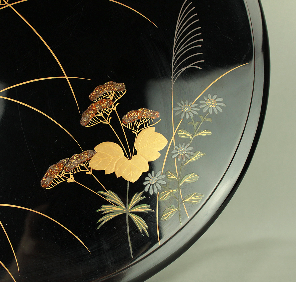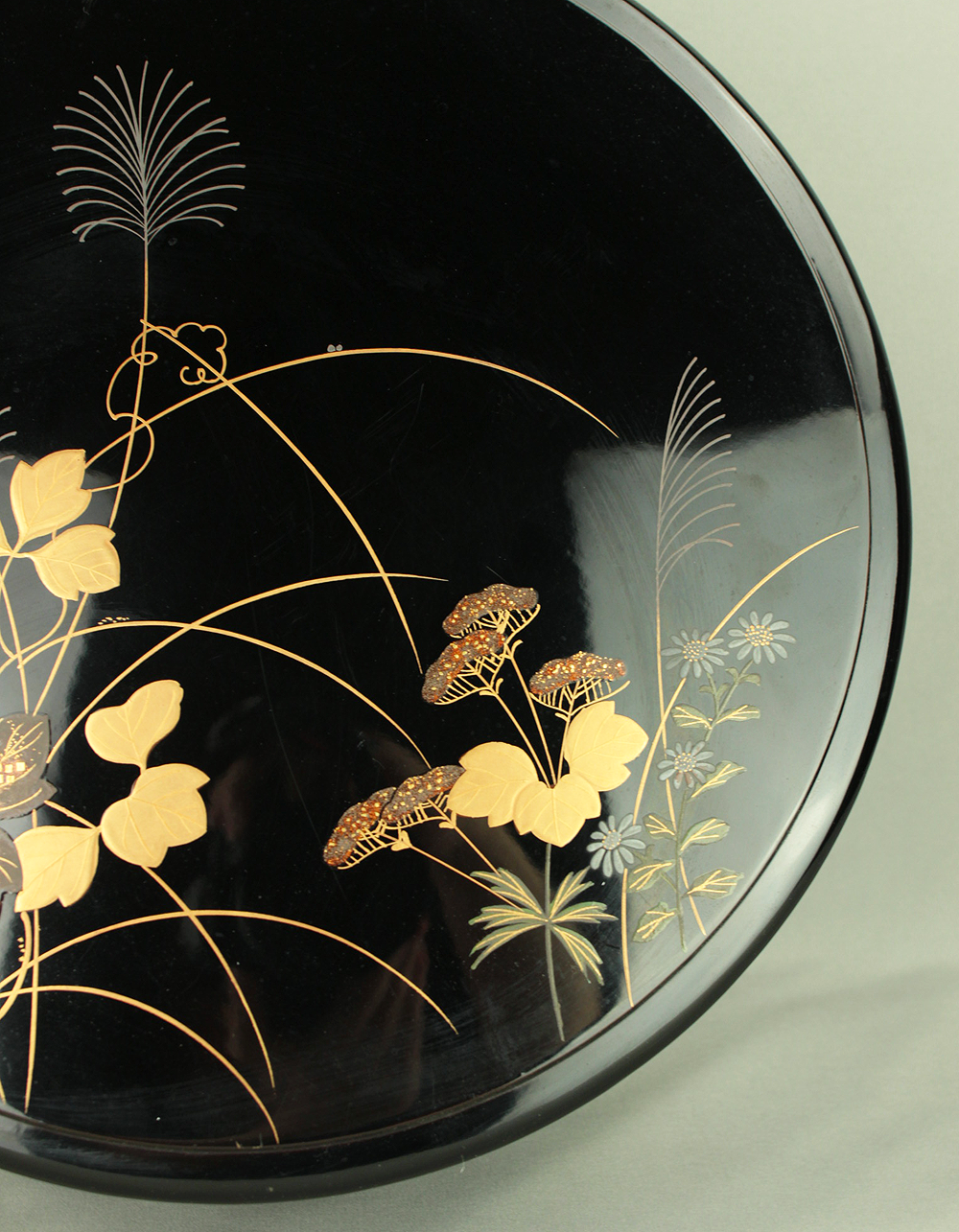 Chabitsu tea box Makie Lacquerware Flowers and Grasses Japanese tea ceremony utensil 取込盆 Torikomibon VA825