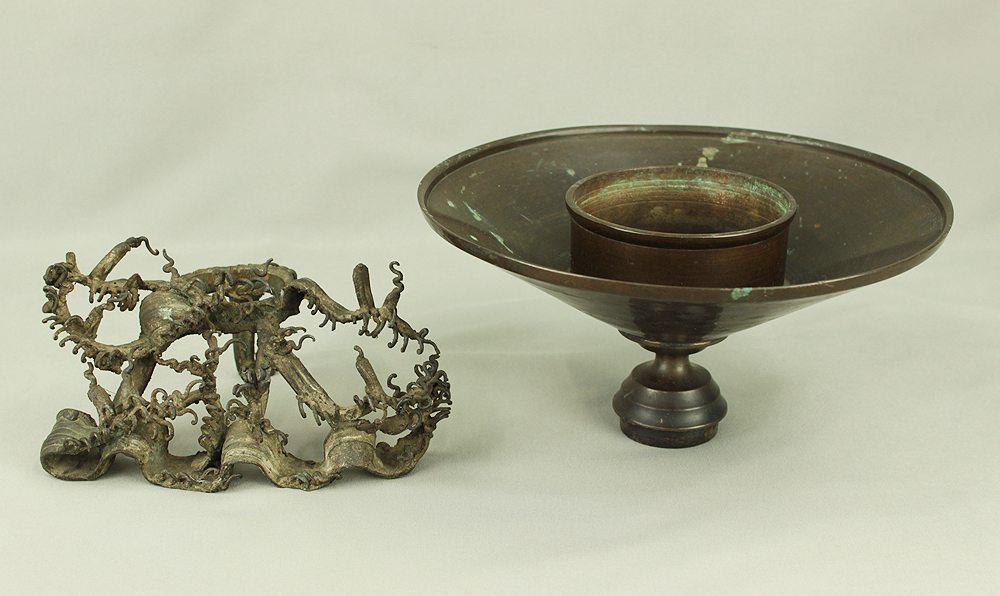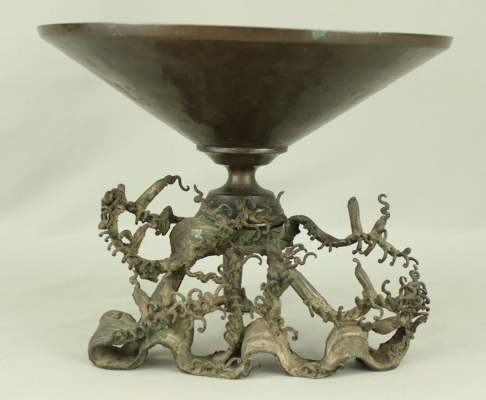 Wave-Shaped Legs Bronze Vase Ikebana Vase Usubata Suehiro Hanaike 末廣花生 VA807
