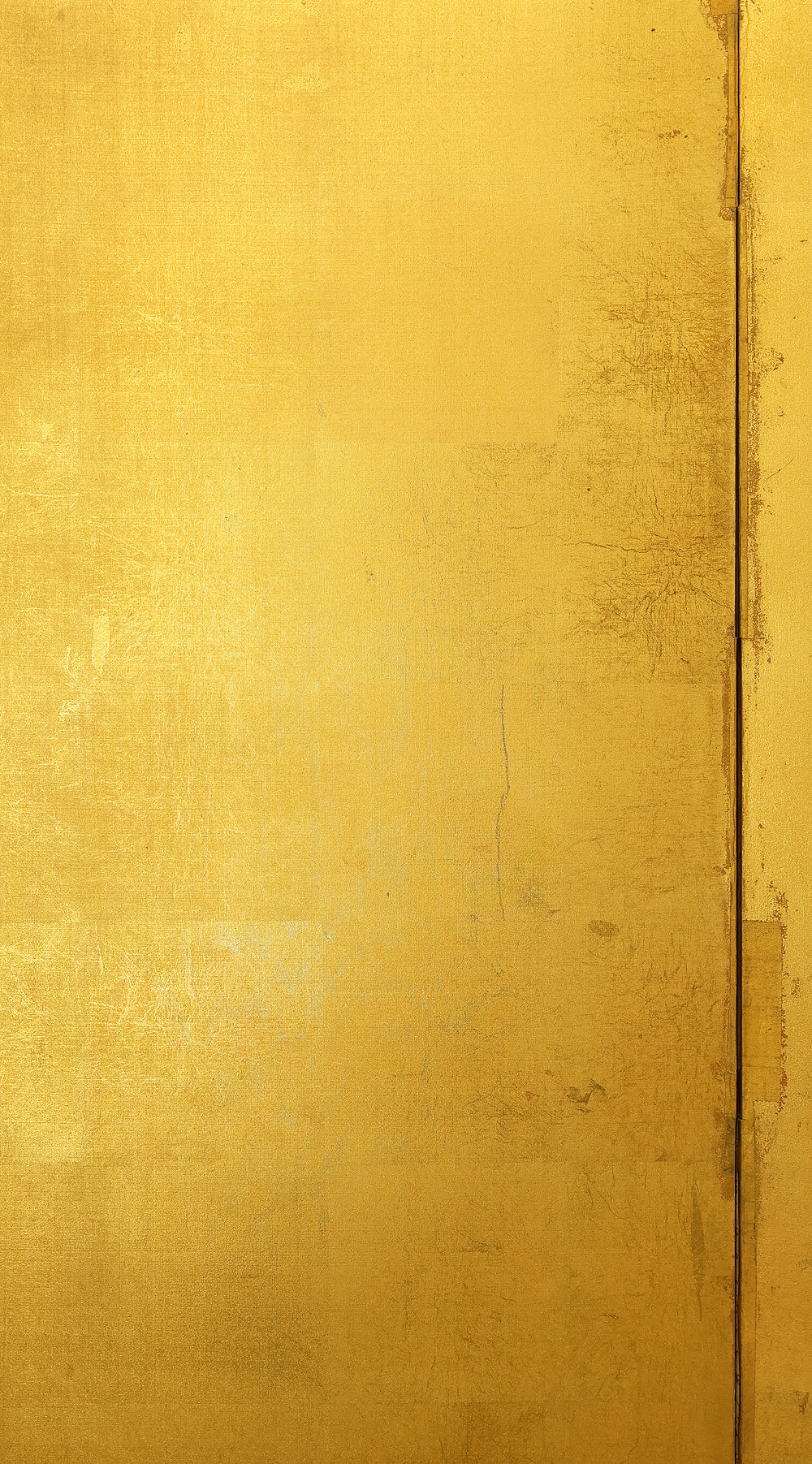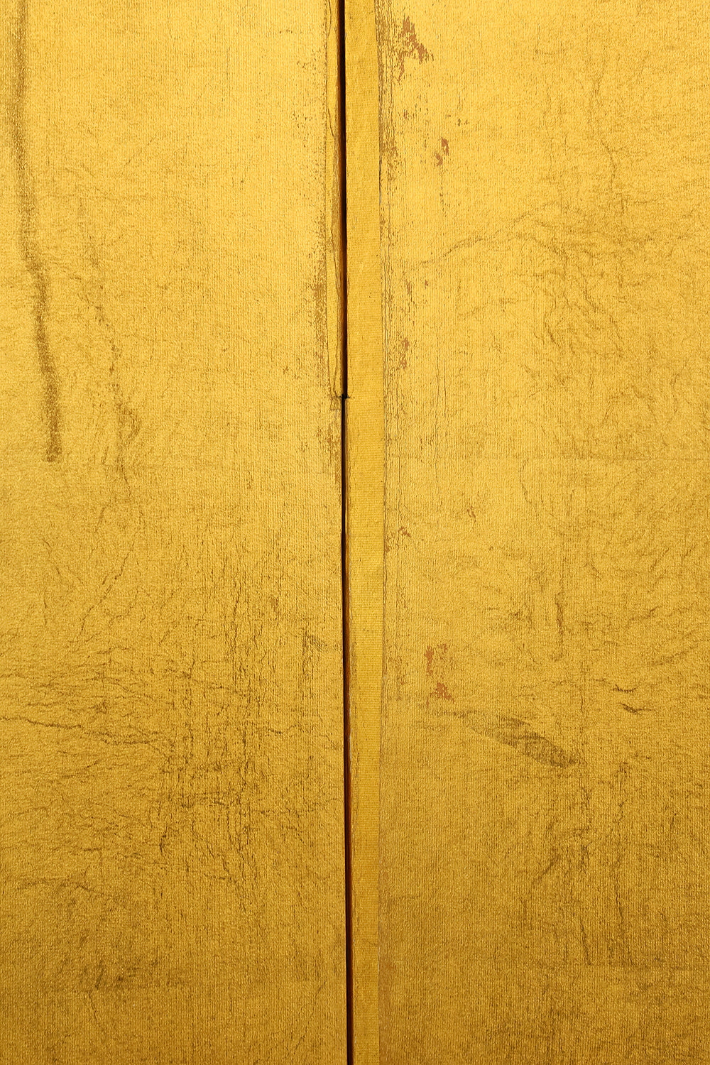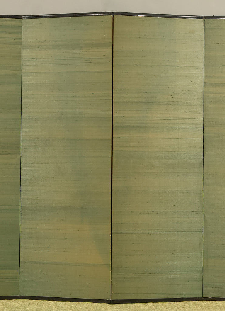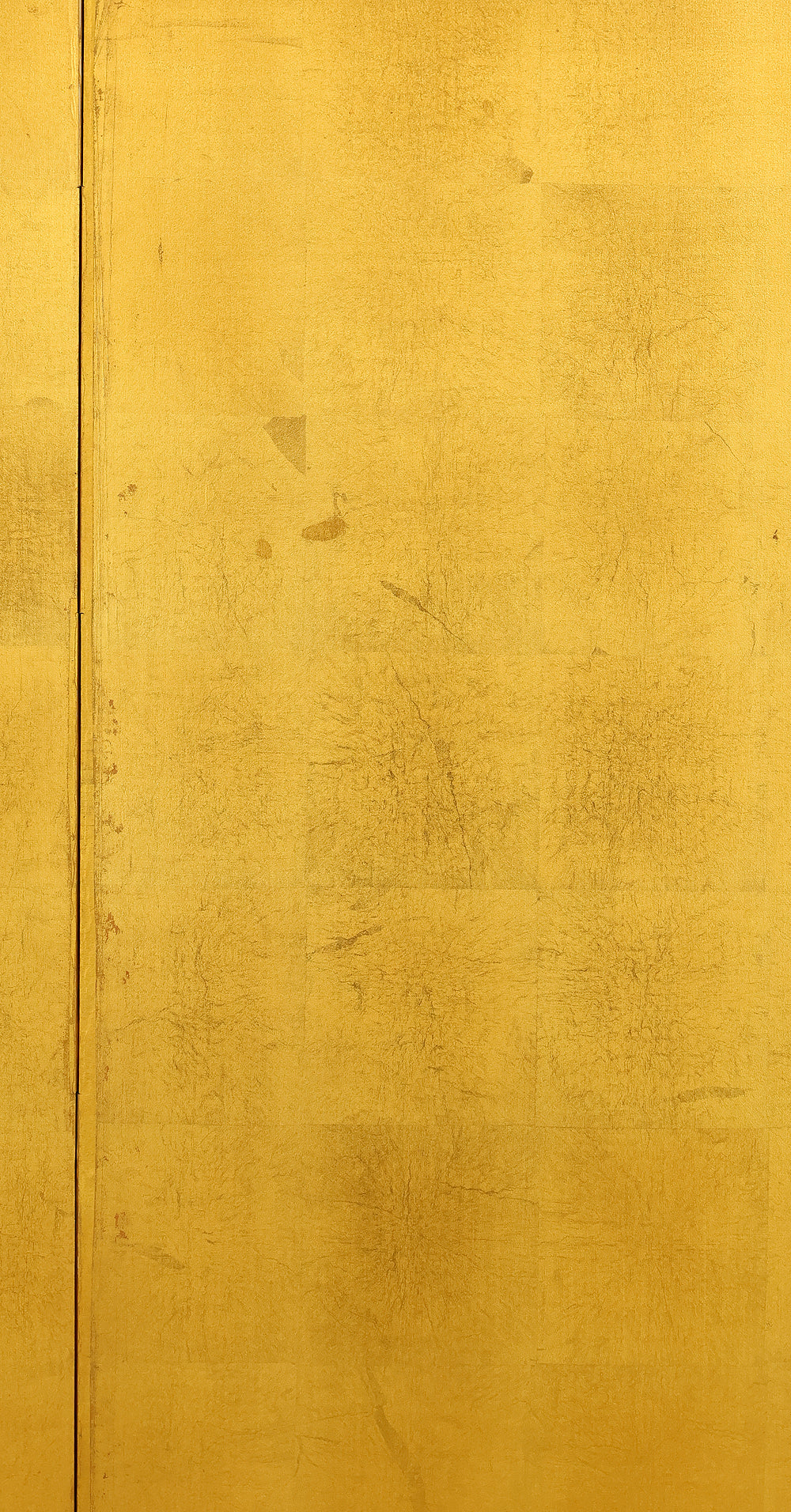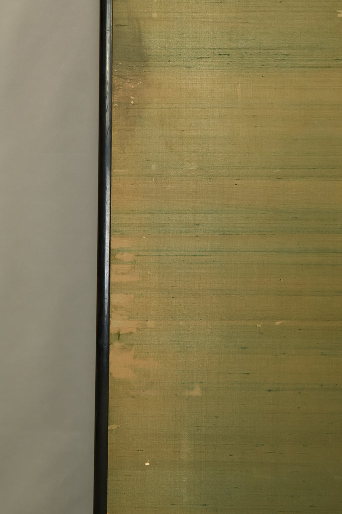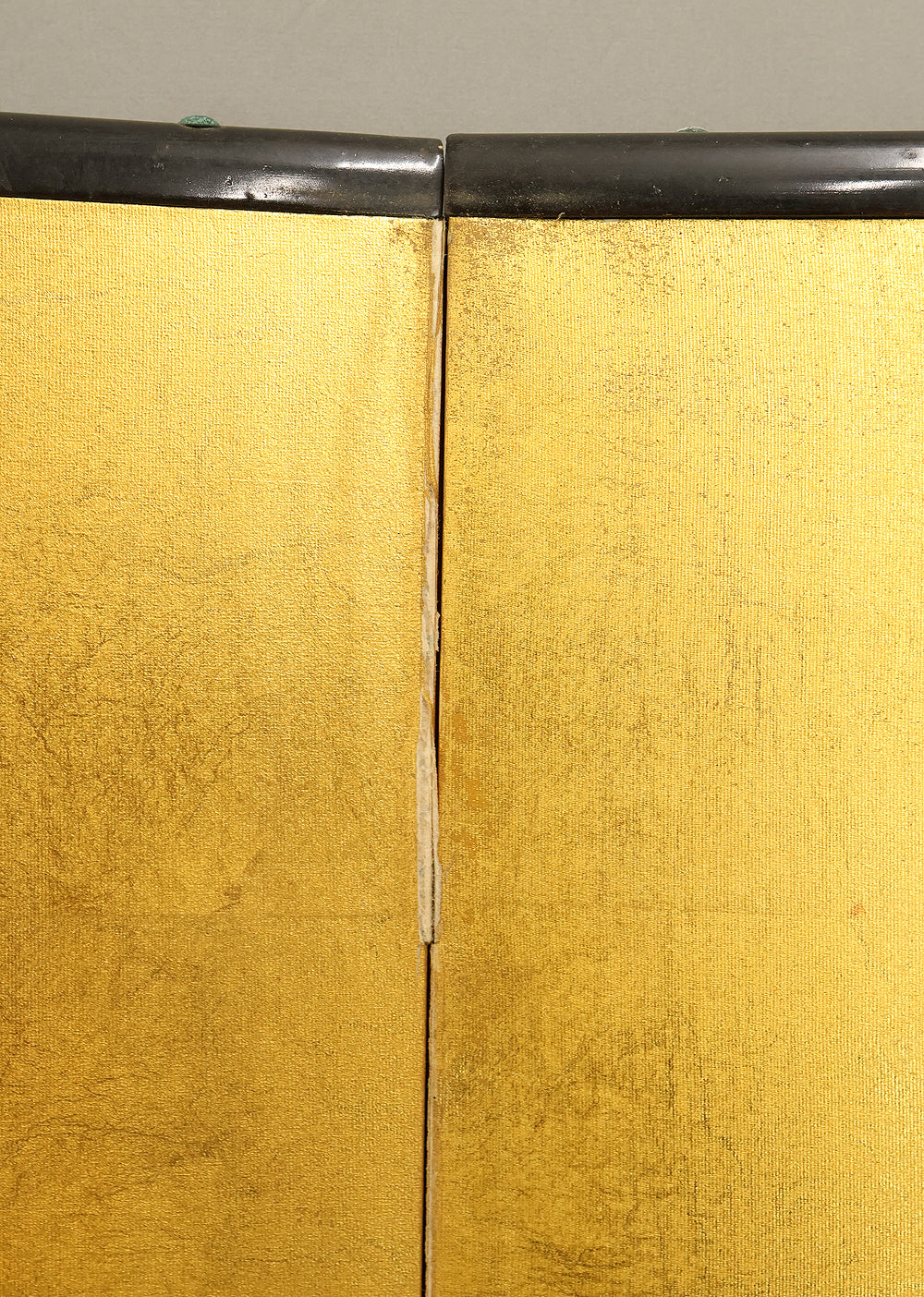 An impressive six-panel Japanese folding screen (byōbu) richly finished with genuine gold leaf applied through traditional foil stamping techniques, presenting a luminous surface that has developed a deep, dignified patina over time. The gold leaf panels display clearly visible leaf joints and subtle variations in tone, characteristics consistent with authentic honkin (pure gold leaf) screens crafted in the early 20th century, most plausibly from the late Taishō to early Shōwa period. The surface shows natural aging, gentle wear, and soft tonal transitions that only decades of presence can create, lending the screen a quiet authority and historical depth impossible to replicate in later decorative works. Accompanied by its original wooden storage box, itself bearing signs of long use and careful preservation, this screen speaks to a life spent within refined Japanese interiors, where light, space, and material were thoughtfully harmonized. When placed within a modern living space, gallery, or reception area, the gold surface responds beautifully to changing light throughout the day, subtly warming the room and evoking a sense of continuity, protection, and enduring elegance. More than a decorative object, this byōbu stands as a rare surviving example of traditional gold leaf craftsmanship, offering both visual grandeur and the quiet reassurance of an authentic, time-honored work meant to be enjoyed for generations to come.