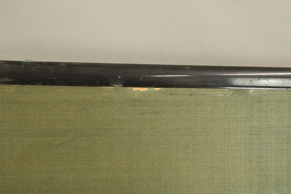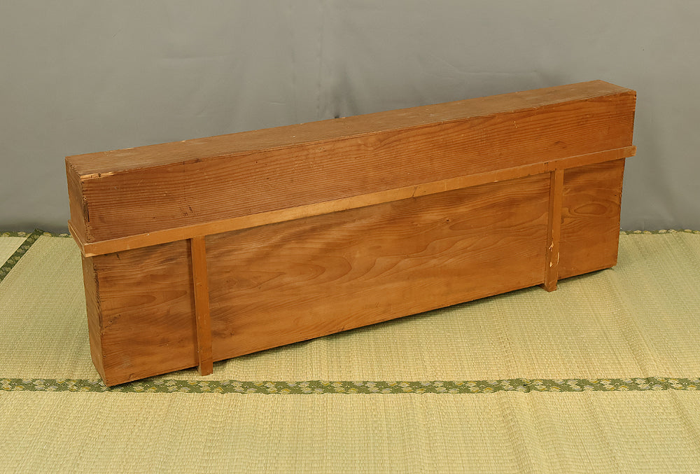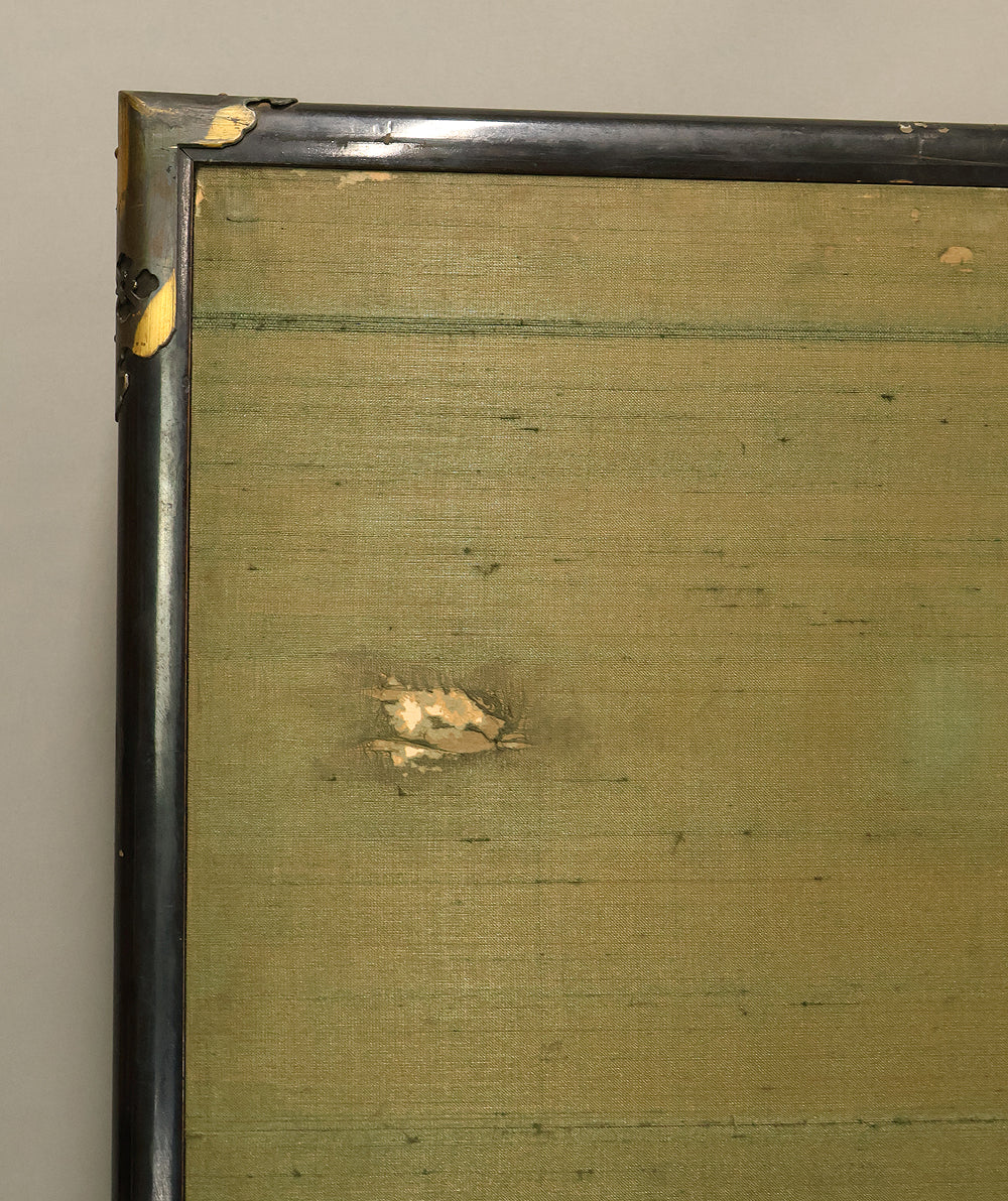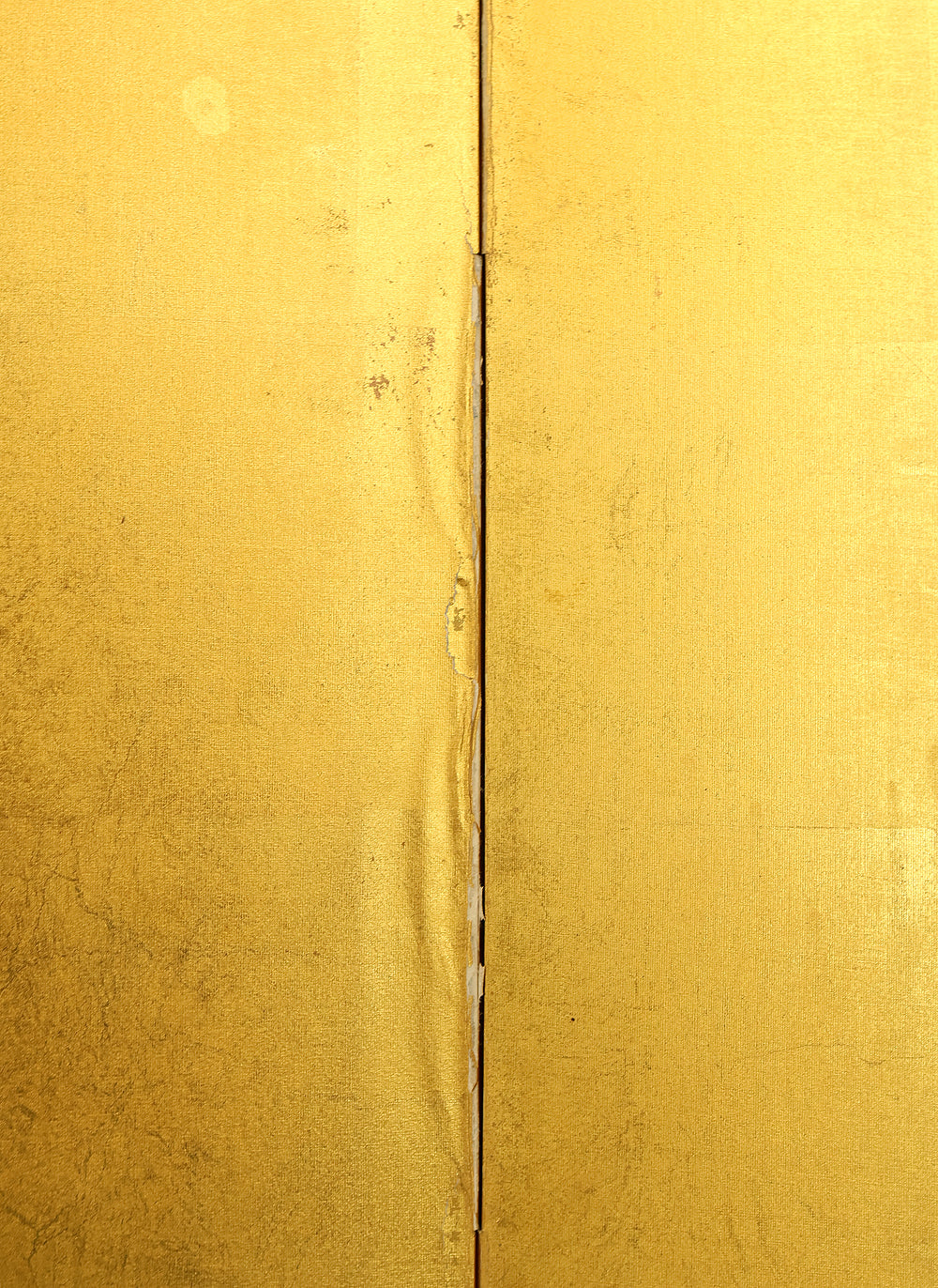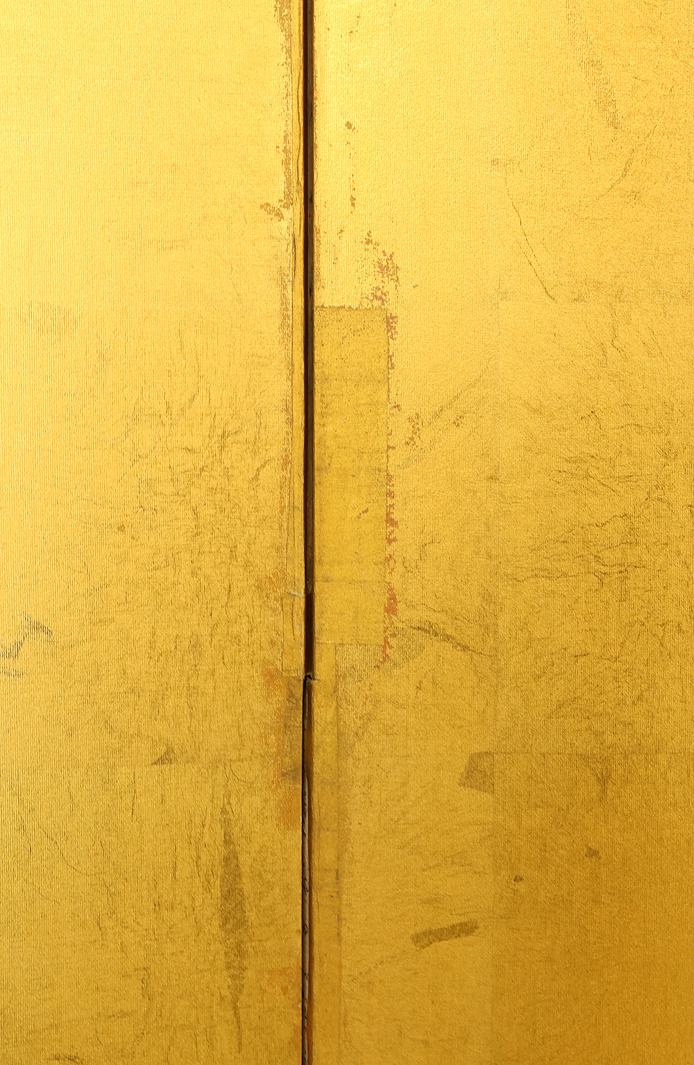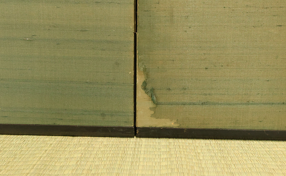 An impressive six-panel Japanese folding screen (byōbu) richly finished with genuine gold leaf applied through traditional foil stamping techniques, presenting a luminous surface that has developed a deep, dignified patina over time. The gold leaf panels display clearly visible leaf joints and subtle variations in tone, characteristics consistent with authentic honkin (pure gold leaf) screens crafted in the early 20th century, most plausibly from the late Taishō to early Shōwa period. The surface shows natural aging, gentle wear, and soft tonal transitions that only decades of presence can create, lending the screen a quiet authority and historical depth impossible to replicate in later decorative works. Accompanied by its original wooden storage box, itself bearing signs of long use and careful preservation, this screen speaks to a life spent within refined Japanese interiors, where light, space, and material were thoughtfully harmonized. When placed within a modern living space, gallery, or reception area, the gold surface responds beautifully to changing light throughout the day, subtly warming the room and evoking a sense of continuity, protection, and enduring elegance. More than a decorative object, this byōbu stands as a rare surviving example of traditional gold leaf craftsmanship, offering both visual grandeur and the quiet reassurance of an authentic, time-honored work meant to be enjoyed for generations to come.