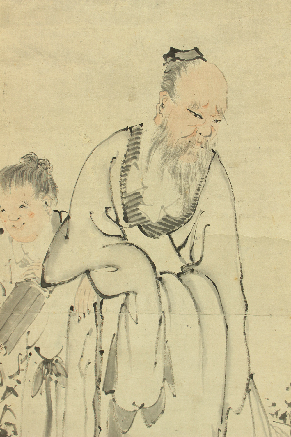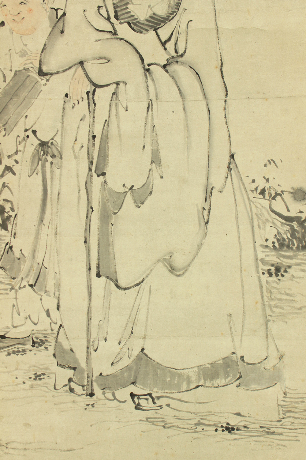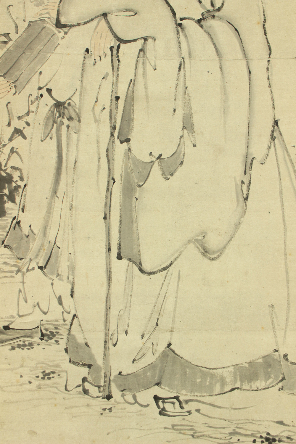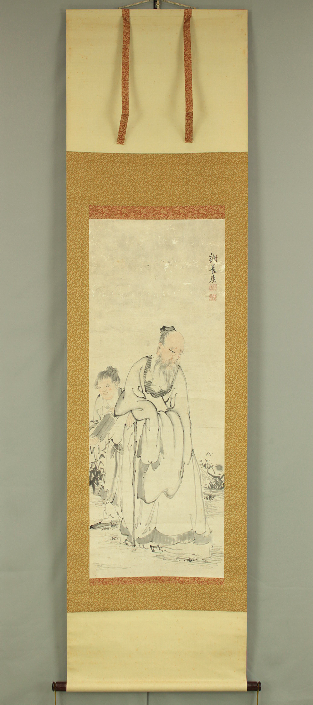 与謝蕪村 Yosa Buson (1716-1784) Japanese antique art kakejiku kakemono wall hanging scroll / 高士従僕 - Wise Man and Servant with Box RD553
