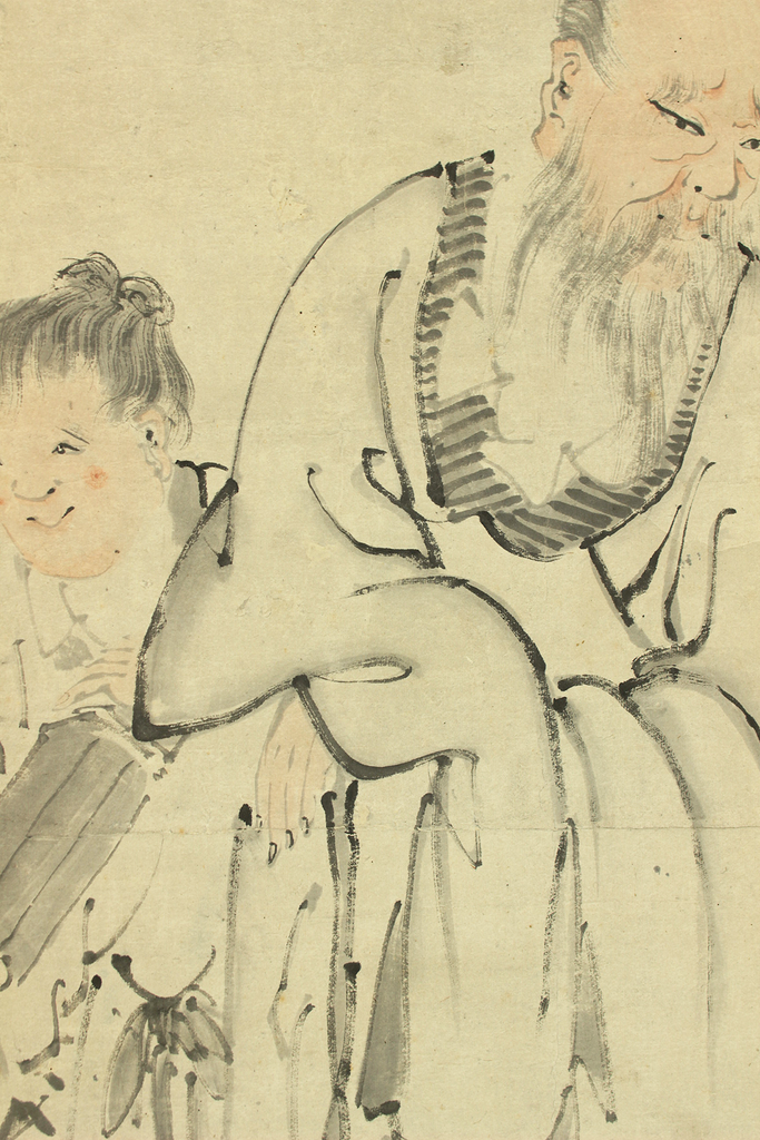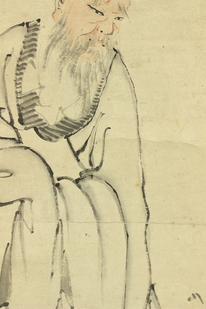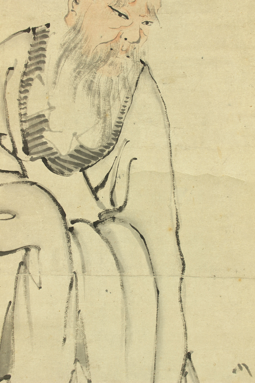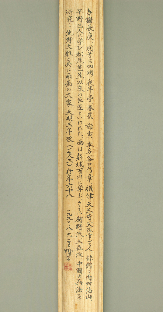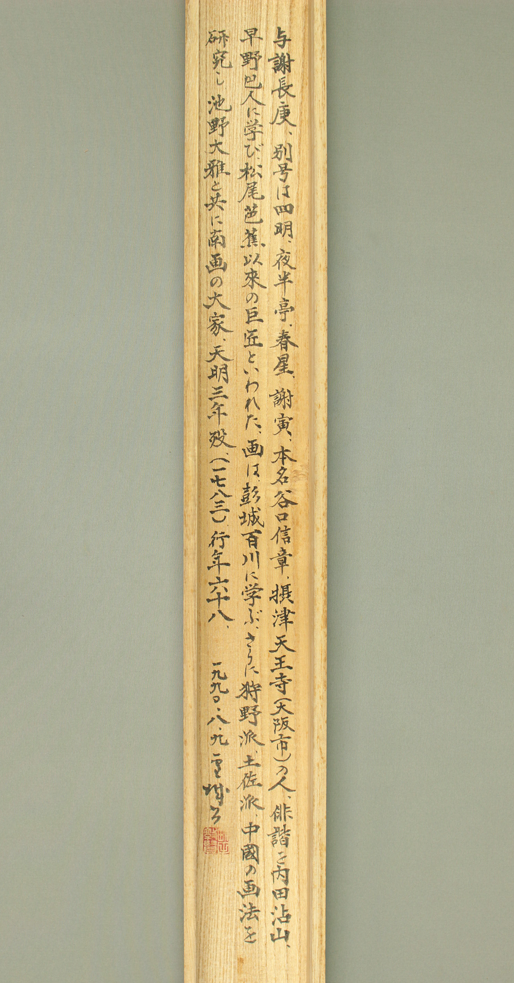 Haiku poet and painter of the mid-Edo period. Yosa Buson is famous as one of the three great masters of haikai (Haiku poets) in the Edo period, along with 松尾芭蕉 Matsuo Basho (1644-1694) and 小林一茶 Kobayashi Issa (1763-1828). Born into a farming family, he lost his parents when he was a teenager and set out for Edo (now Tokyo) at the age of 20. In Edo, he learned haikai from 早野巴人 Hayano Hajin (1676-1742). After his master's death, he traveled around Kanto and Oshu, and then moved to Kyoto. His haikai style is full of realism, romance, and lyricism, and he became a central figure in the haikai circles of the middle age. He is also an excellent painter, and along with 池大雅 Ike no Taiga (1723-1776), is considered a great master of literati painting.