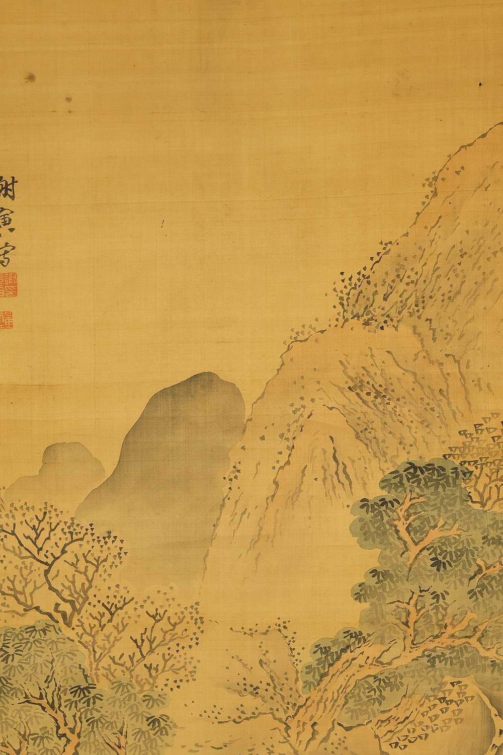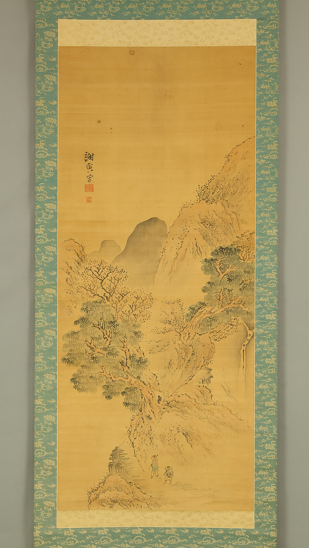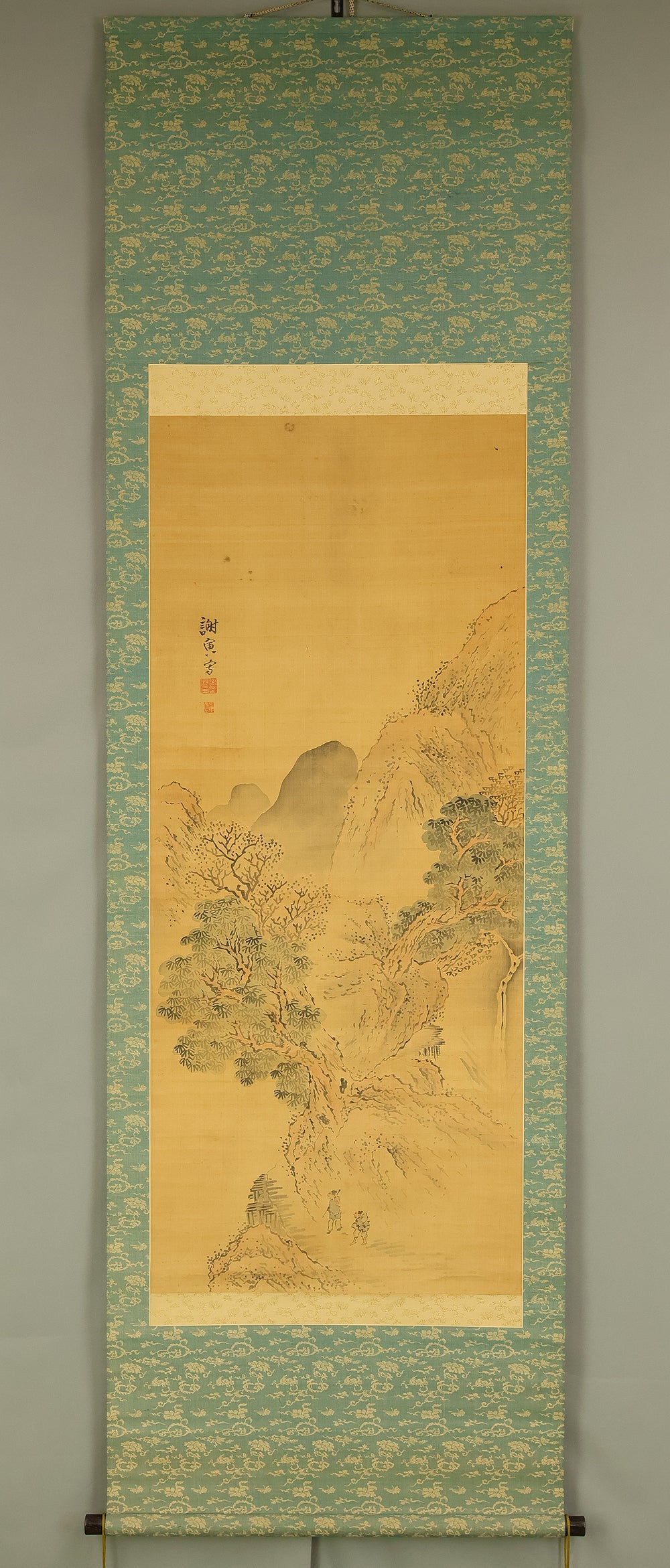 与謝蕪村 Yosa Buson (1716-1784) Japanese antique art kakejiku kakemono wall hanging scroll / Sansui Landscapes Traveller on Mountain Path with Box RD868