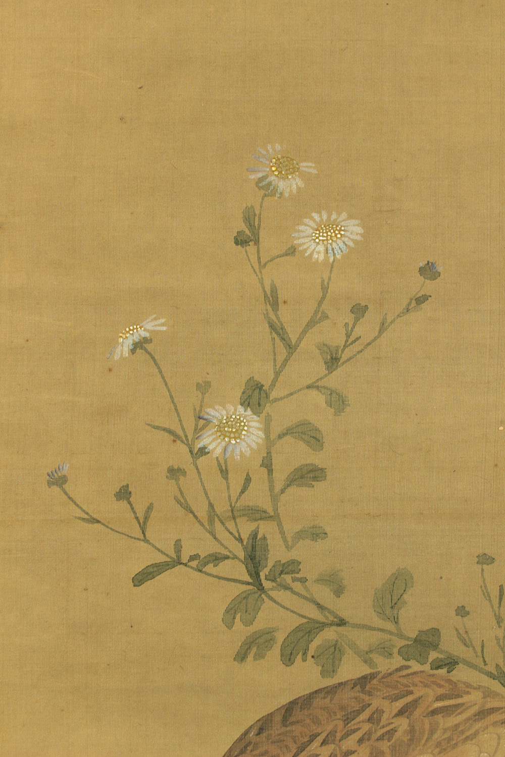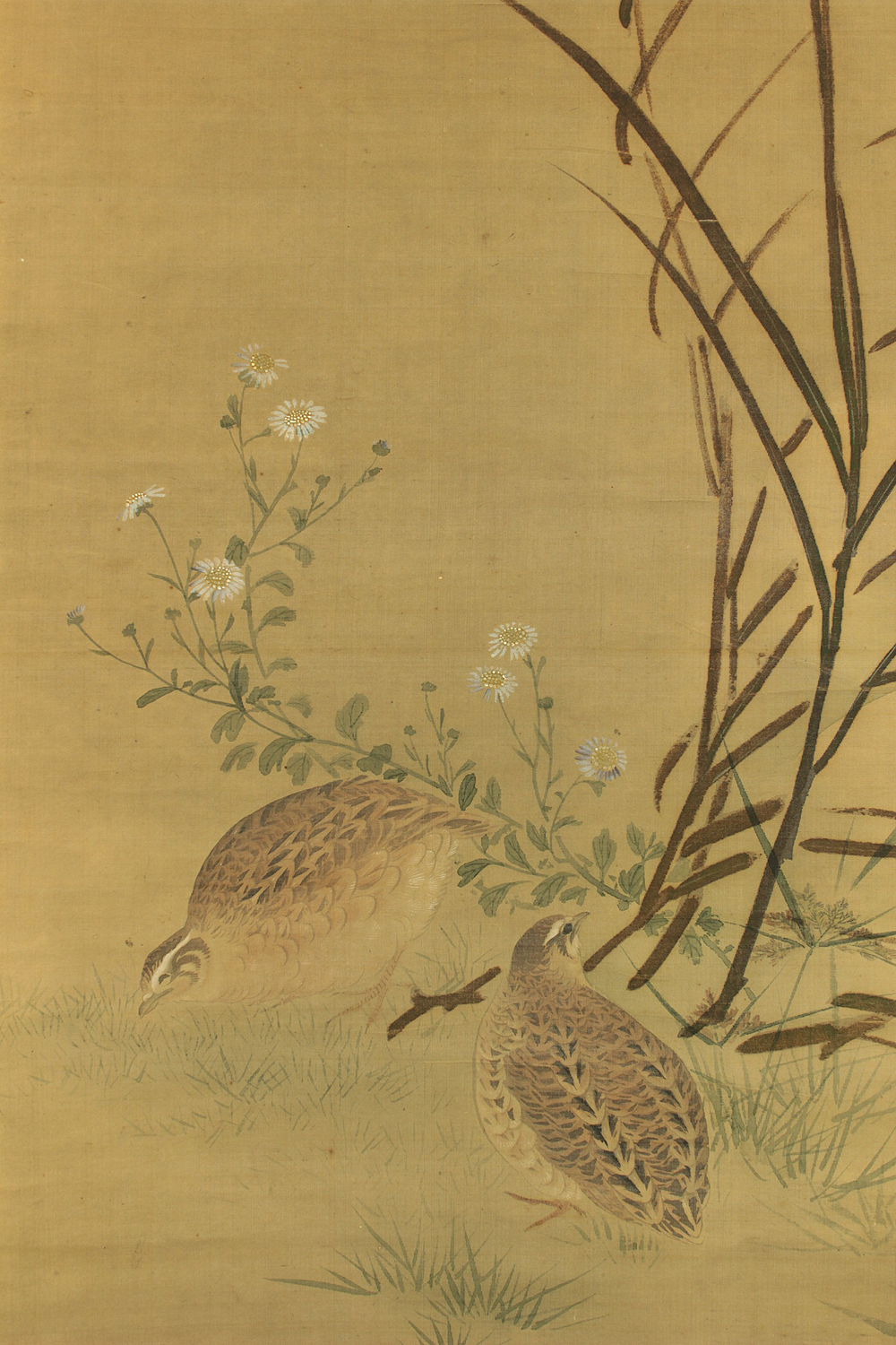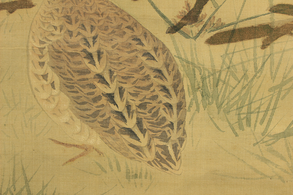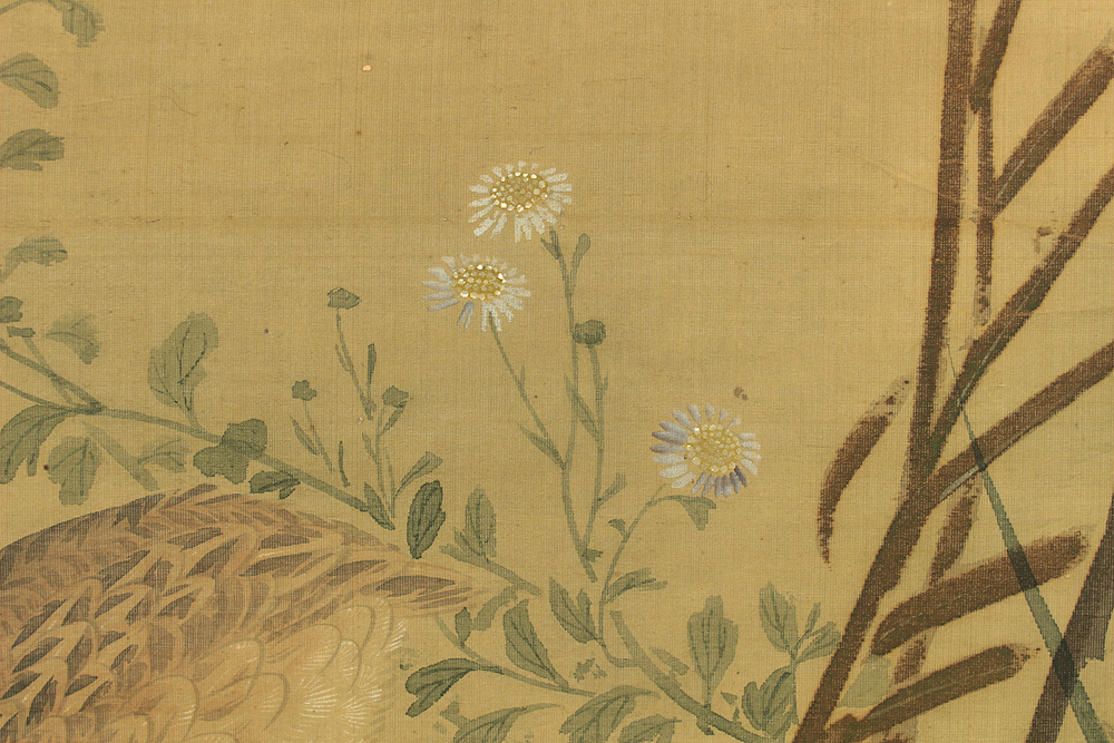 Attributed to 円山応挙 Maruyama Okyo (1733-1795) Japanese antique art kakejiku kakemono wall hanging scroll / Quail, Chrysanthemums and Silver Grass with Appraised Box RD483