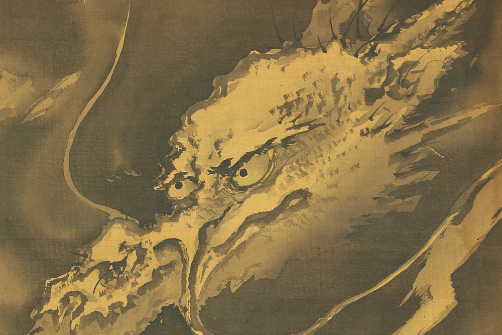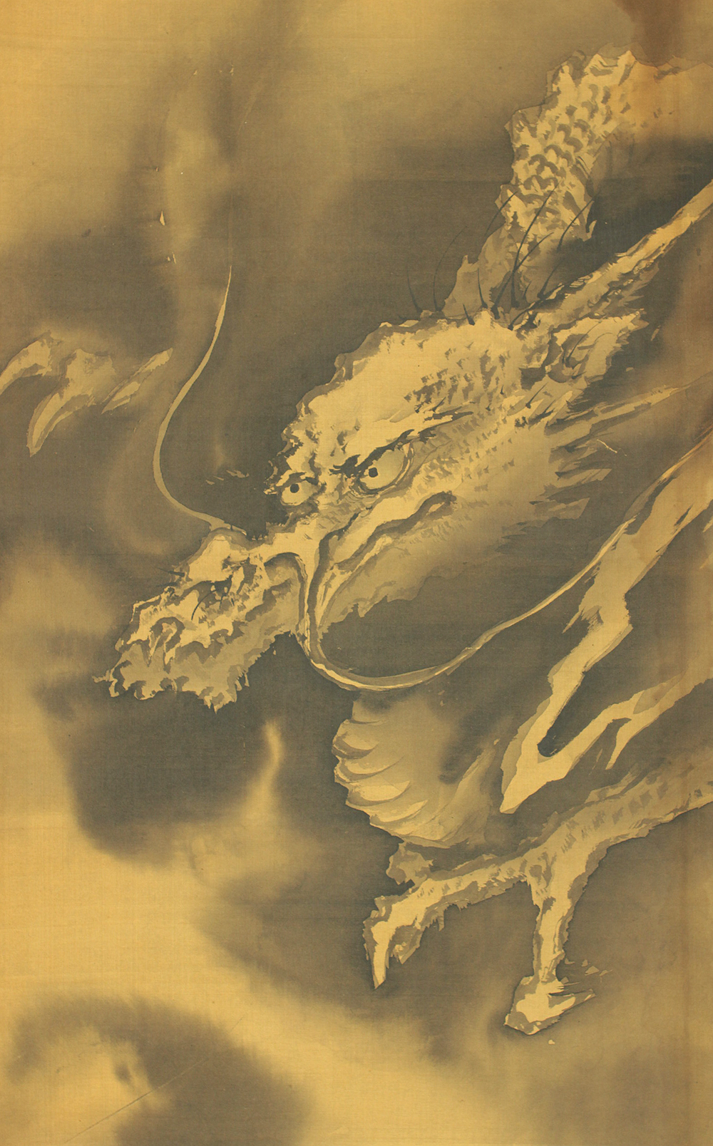 山口南嶺 Yamaguchi Nanrei Japanese antique art paired kakejiku kakemono wall hanging scroll / Suiboku Ink Dragon and Tiger with Box RD508