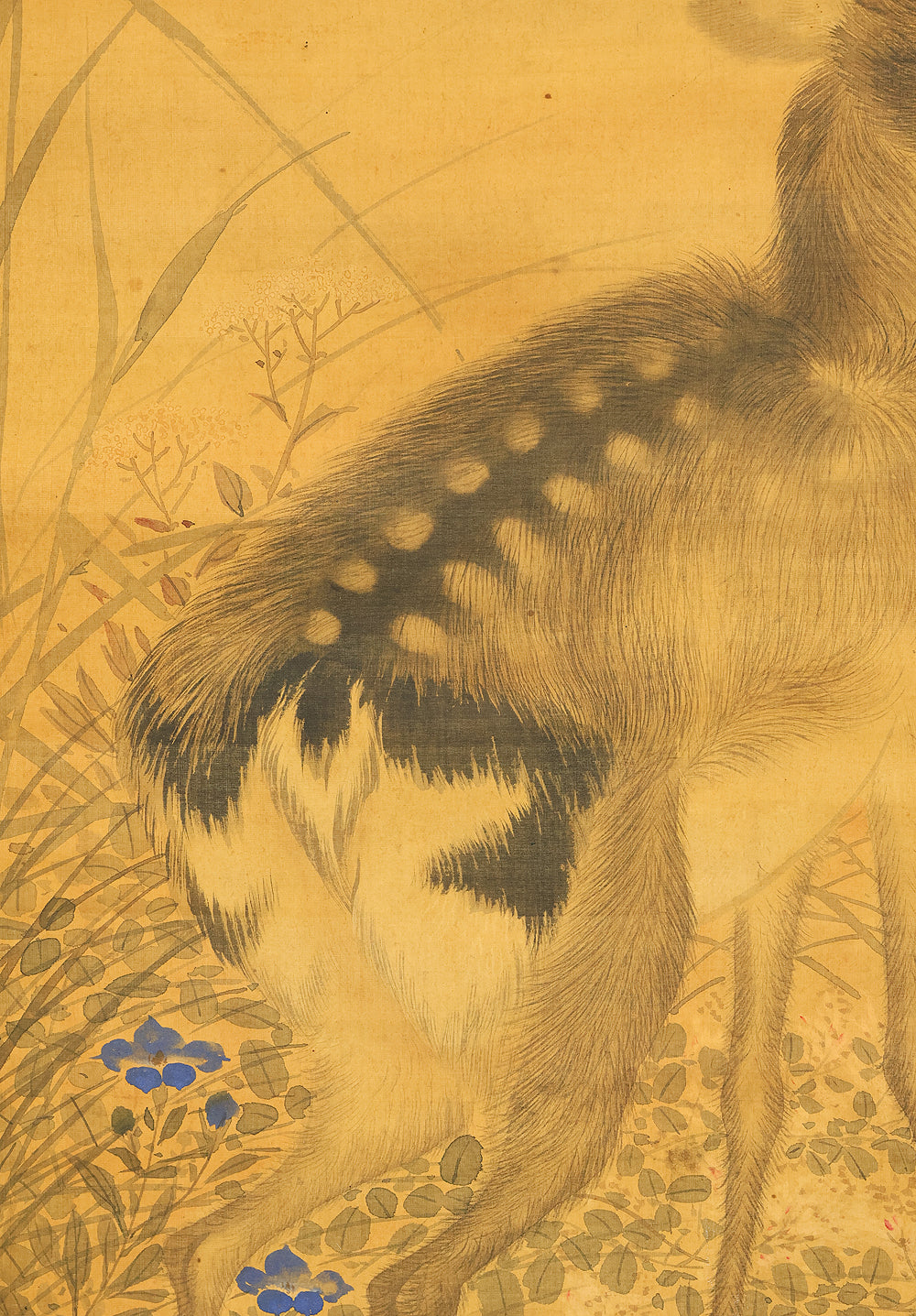 一鶴 Ikkaku Japanese art kakejiku kakemono wall hanging scroll / Deer and Silver Grass, Gentian, Bush Clovers with Box RE389