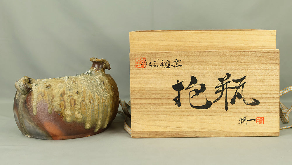 與那覇朝一 Yonaha Choichi (b1936) Shoulder Carried Sake Bottle「抱瓶」Dachibin with Original Box (Tomobako) VA976