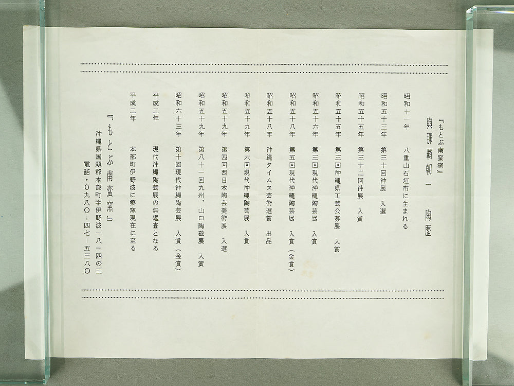 Ceramic artist from Okinawa Prefecture. In 1983, he won the Gold Prize at the 5th Contemporary Okinawan Ceramics Exhibition.