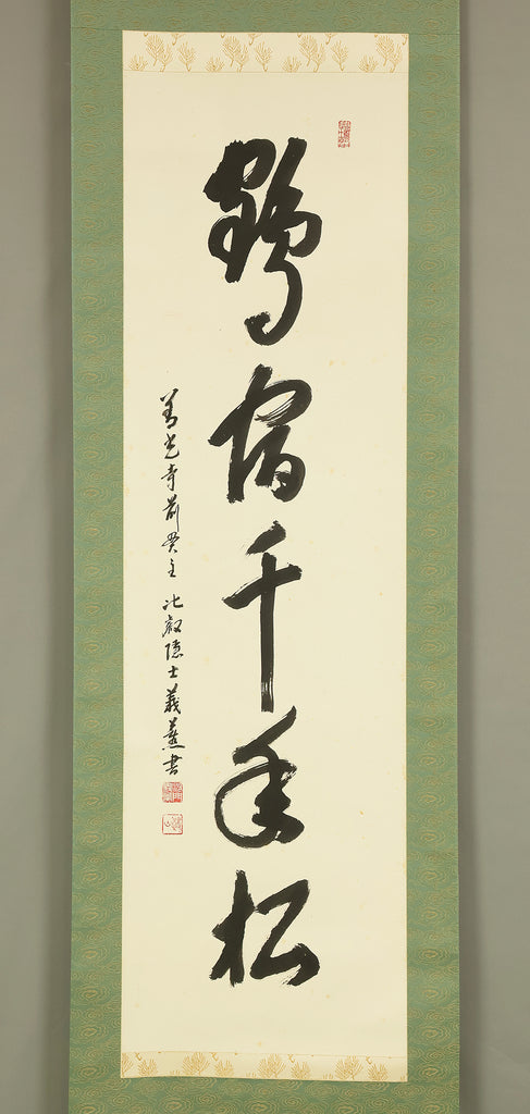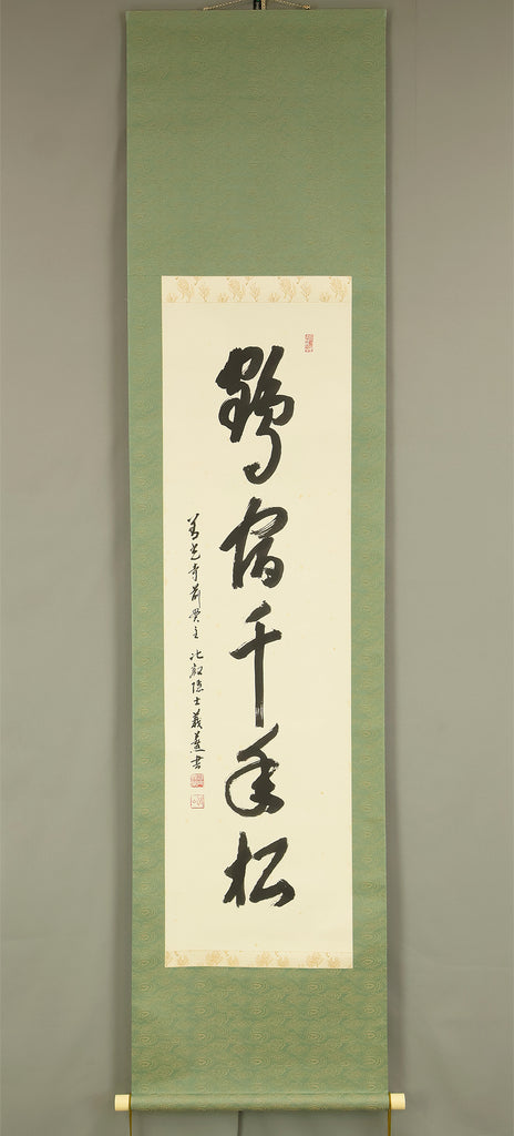 三浦義薫 Miura Gikun Tendai school Zenko-ji Japanese Zen kakejiku kakemono hanging scroll / 鶴舞千年松 Tsuruwa Mau Sennenno Matsu with Original Box (Tomobako) RE374