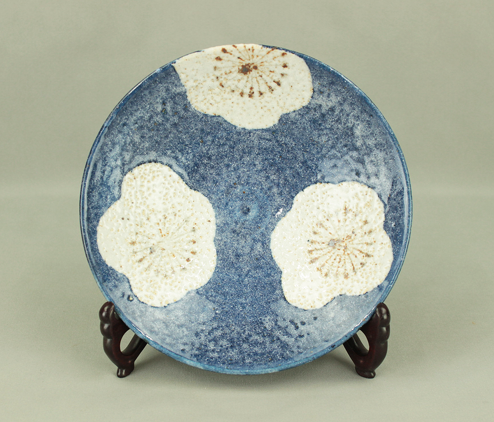 Shino ware White Plum Patterned Pastry Plate with Box VA821