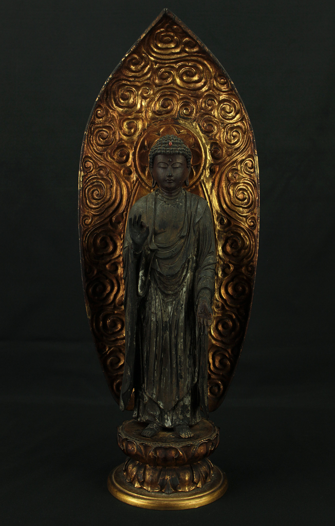 Amida Nyorai 阿弥陀如来 (Amitābha) 45.5cm Buddhism Gilt Lacquer Wooden Statue Sculpture VA822
