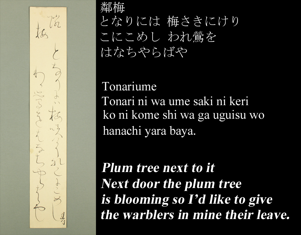大田垣蓮月 Otagaki Rengetsu (1791-1875) Japanese antique Tanzaku rectangle paper / Waka Poem 鄰梅 - となりには 梅さきにけり~ TA85